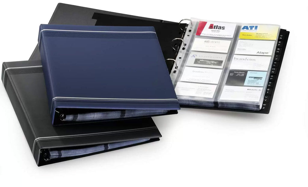 Album za shranjevanje vizitk, 20 vložnih map za 400 vizitk, možnost vpenjanja dodatnih vložnih map, art. 2389