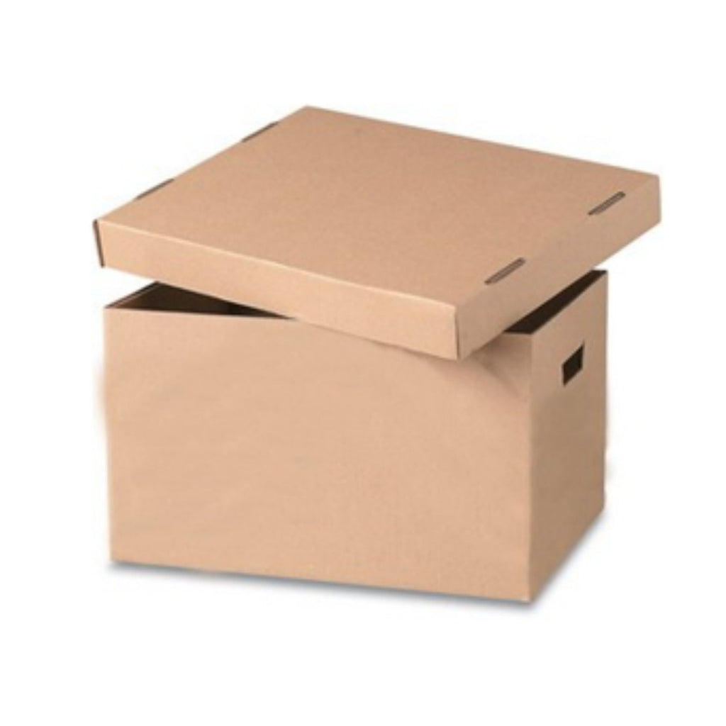 Arhivska škatla dimenzij 330 x 254 x 425 mm, zložljiva, s pokrovom. Narejena iz valovite lepenke.