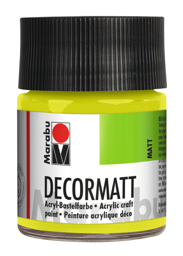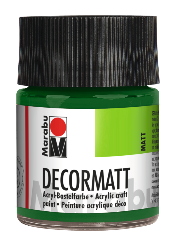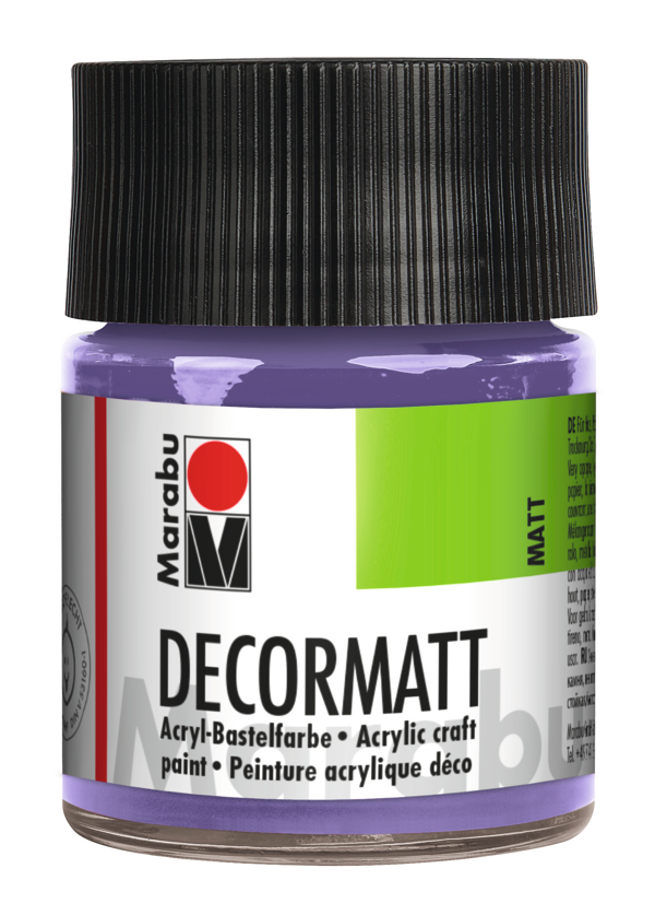 Žametna mat akrilna barva Decormatt – ena barva za vse, kar si ustvarjalnega zamislite. Barva je narejena na vodni osnovi, je intenzivna in odporna na vremenske vplive. Njena kremna struktura je idealna za prostoročno slikanje, delo s šablonami in žigosanje, za servietno tehniko ter tradicionalni tehniki barvanja hrbtne strani stekla ali lesa, pa tudi za številne druge vrste ustvarjanja.