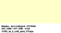 Vsestranska, svilnato mat akrilna barva Marabu DO IT je prava izbira za domače mojstre in vse vrste hobi projektov. Barva je narejena na vodni osnovi in ko je enkrat povsem suha, postane odporna na vremenske in svetlobne vplive. Barva se hitro suši, ima dobro prekrivnost in je vsestransko uporabna. Idealna je za domače projekte, kjer uporabljate les, lesene vezane plošče, papir, karton, kamen, kovino, terakoto, polistirenu in mnoge druge materiale. Podlaga naj ne bo mastna ali prašna. Barvo lahko nanašate s čopičem, gobico, valjčkom za barvanje in drugimi slikarskimi pripomočki.