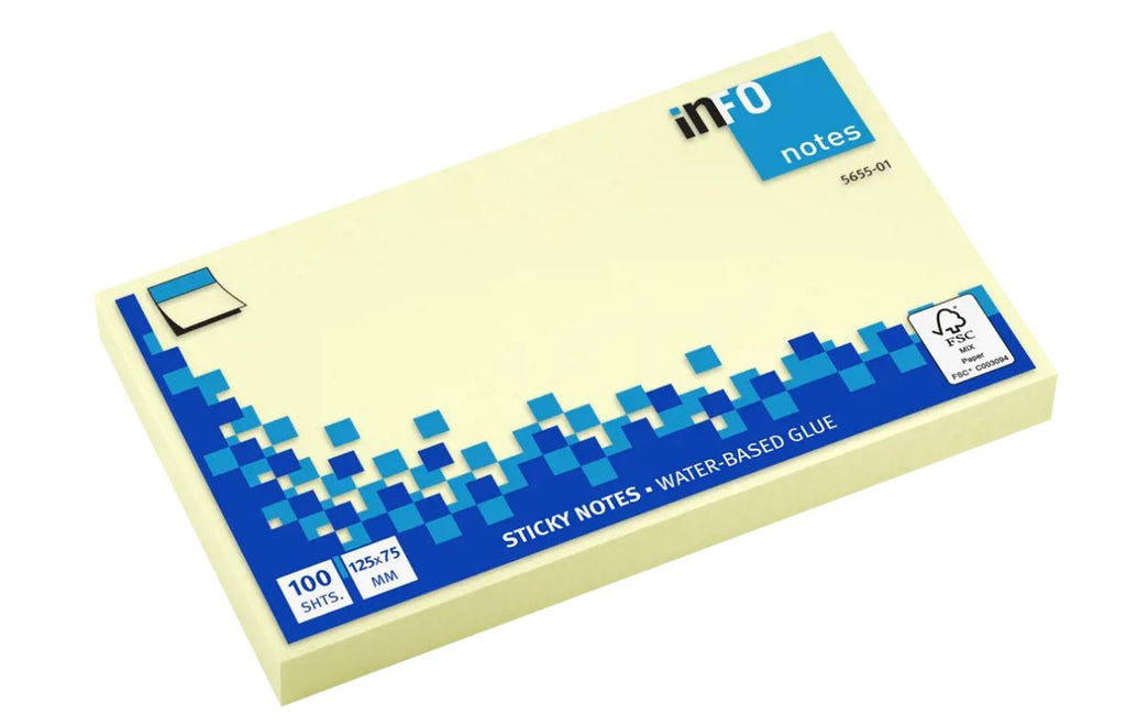 Visoko kvalitetni elegantno oblikovani, okolju prijazni, samolepljivi blokci dimenzije 125 x 75 mm, zagotavljajo enostavno in priočno jemanje lističev iz bloka ali stojala. So zelo priljubljeni pri uporabi doma, v šoli, vrtcu oziroma povsod, kje želimo pustiti kratko in vidno sporočilo. V bloku je 100 lističev.