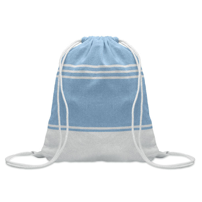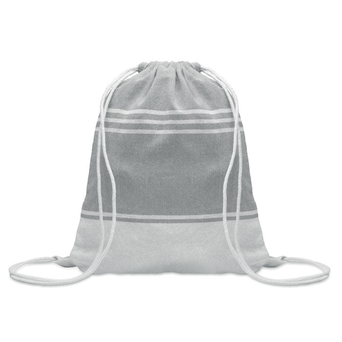 Brisača za plažo hammam z vrečko na vrvico, 180 g, iz 70 % recikliranega bombaža in 30 % recikliranega poliestra.