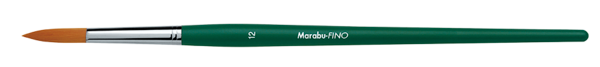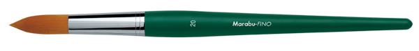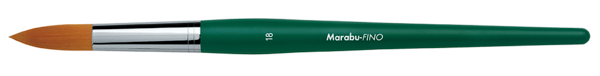 Okrogel čopič iz sintetičnih vlaken Marabu Fino z brezšivno srebrno ferulo in zelenim lesenim ročajem.