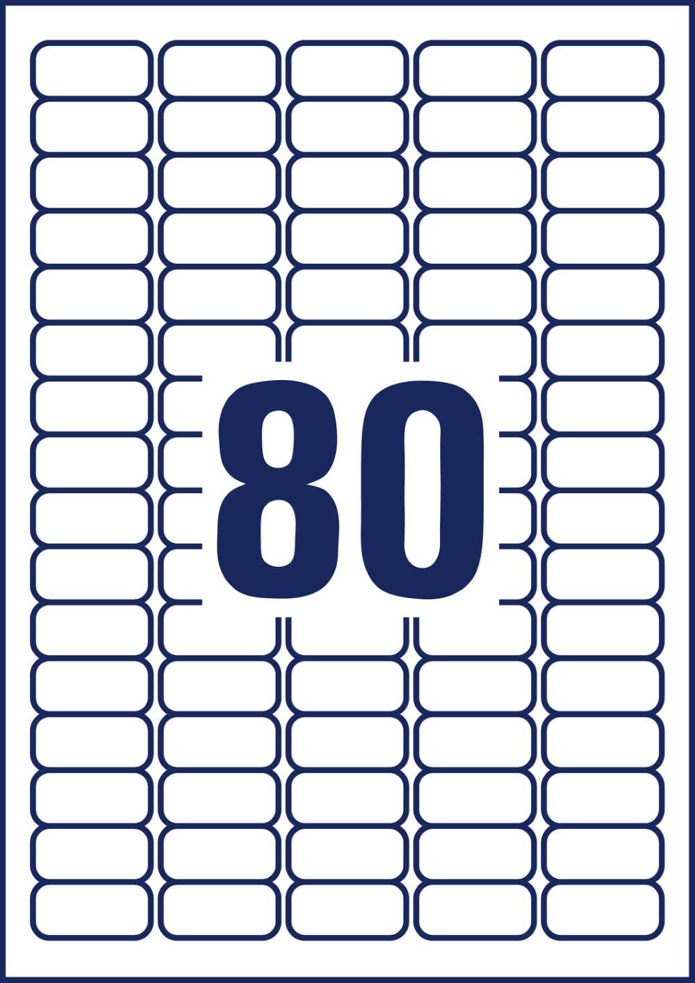 V zavitku je 20 listov, vseh etiket je 1600. Nalepke imajo super močen oprijem tudi na vlažnih, hladnih ali neravnih površinah. Primerne so za tiskanje z vsemi standardnimi tiskalniki. Idealne so za trajno označevanje v zaprtih prostorih. Beljene so brez klora in so 100 % izdelane iz papirja s certifikatom FSC® - izvor lesa je iz preverjenih in zanesljivih virov. Za oblikovanje uporabite brezplačni program, dostopen je na www.avery-zweckform.si.