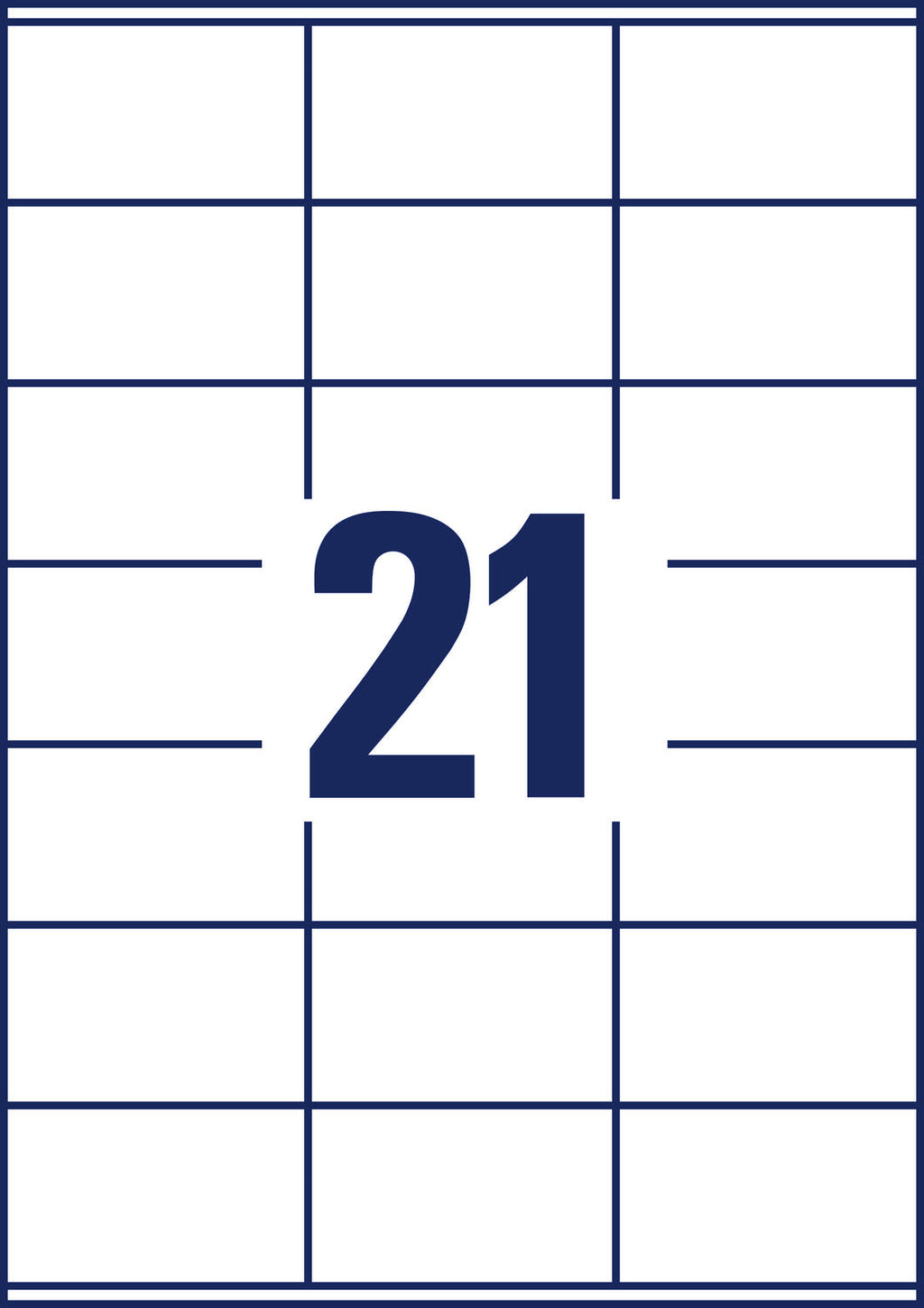 V zavitku je 100 listov, vseh etiket je 2100. Nalepke imajo permanentno lepilo in zanesljiv oprijem na različnih podlagah. Primerne so za tiskanje z vsemi standardnimi tiskalniki. Imajo FSC® certifikat - izvor lesa je iz zanesljivih virov. Ultragrip tehnologija zagotavlja tiskanje brez zastoja. Za oblikovanje uporabite brezplačni program, dostopen je na www.avery-zweckform.si.