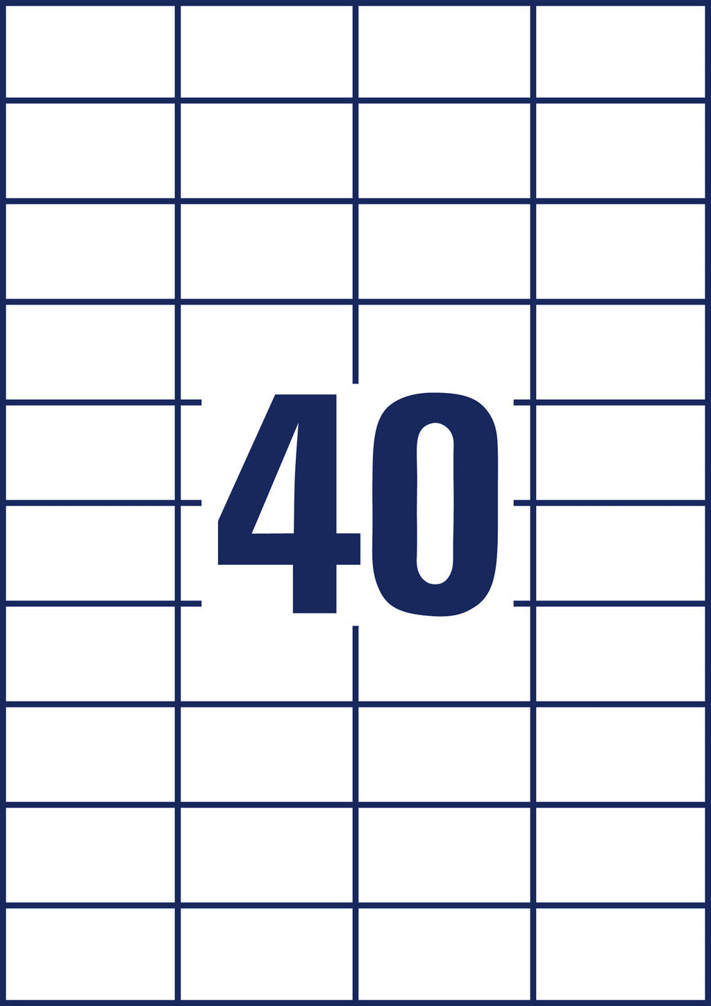 Nalepke imajo permanentno lepilo in zanesljiv oprijem na različnih podlagah. Primerne so za tiskanje z vsemi standardnimi tiskalniki. Imajo FSC® certifikat - izvor lesa je iz zanesljivih virov. Ultragrip tehnologija zagotavlja tiskanje brez zastoja. Za oblikovanje uporabite brezplačni program, dostopen je na www.avery-zweckform.si. Dve varianti pakiranja: srednje (v zavitku je 100 listov, vseh etiket je 4.000) ali večje pakiranje (v zavitku je 220 listov, vseh etiket je 8.800).