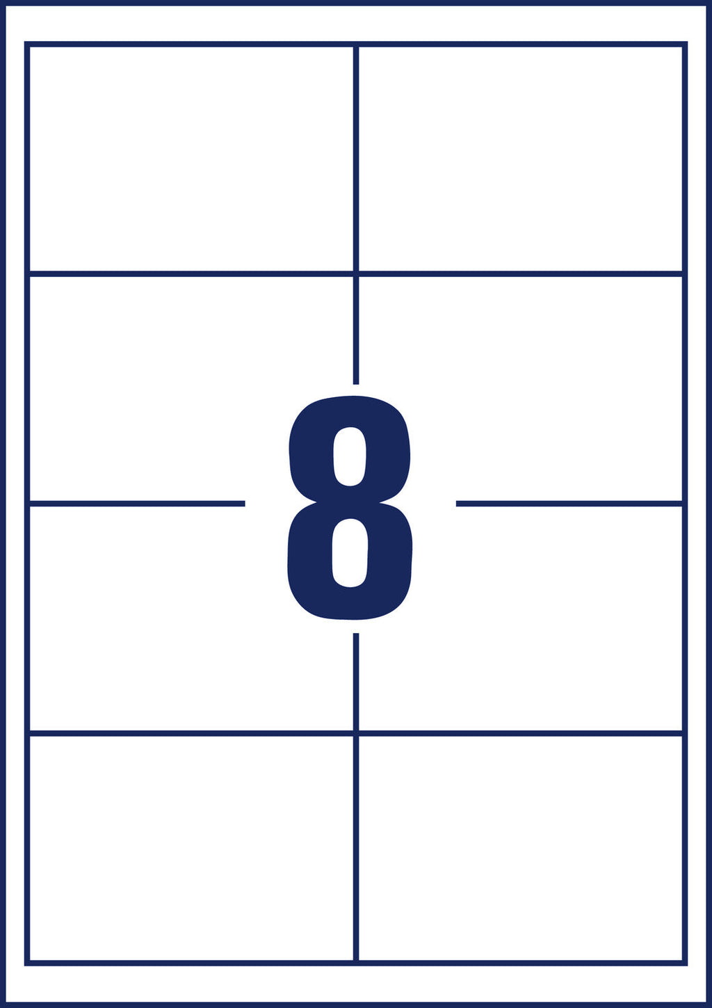 V zavitku je 100 listov, vseh etiket je 800. Nalepke imajo permanentno lepilo in zanesljiv oprijem na različnih podlagah. Primerne so za tiskanje z vsemi standardnimi tiskalniki. Imajo FSC® certifikat - izvor lesa je iz zanesljivih virov. Ultragrip tehnologija zagotavlja tiskanje brez zastoja. QuickPEEL omogoča preprosto in hitro odlepljanje etiket od podlage. Za oblikovanje uporabite brezplačni program, dostopen je na www.avery-zweckform.si.