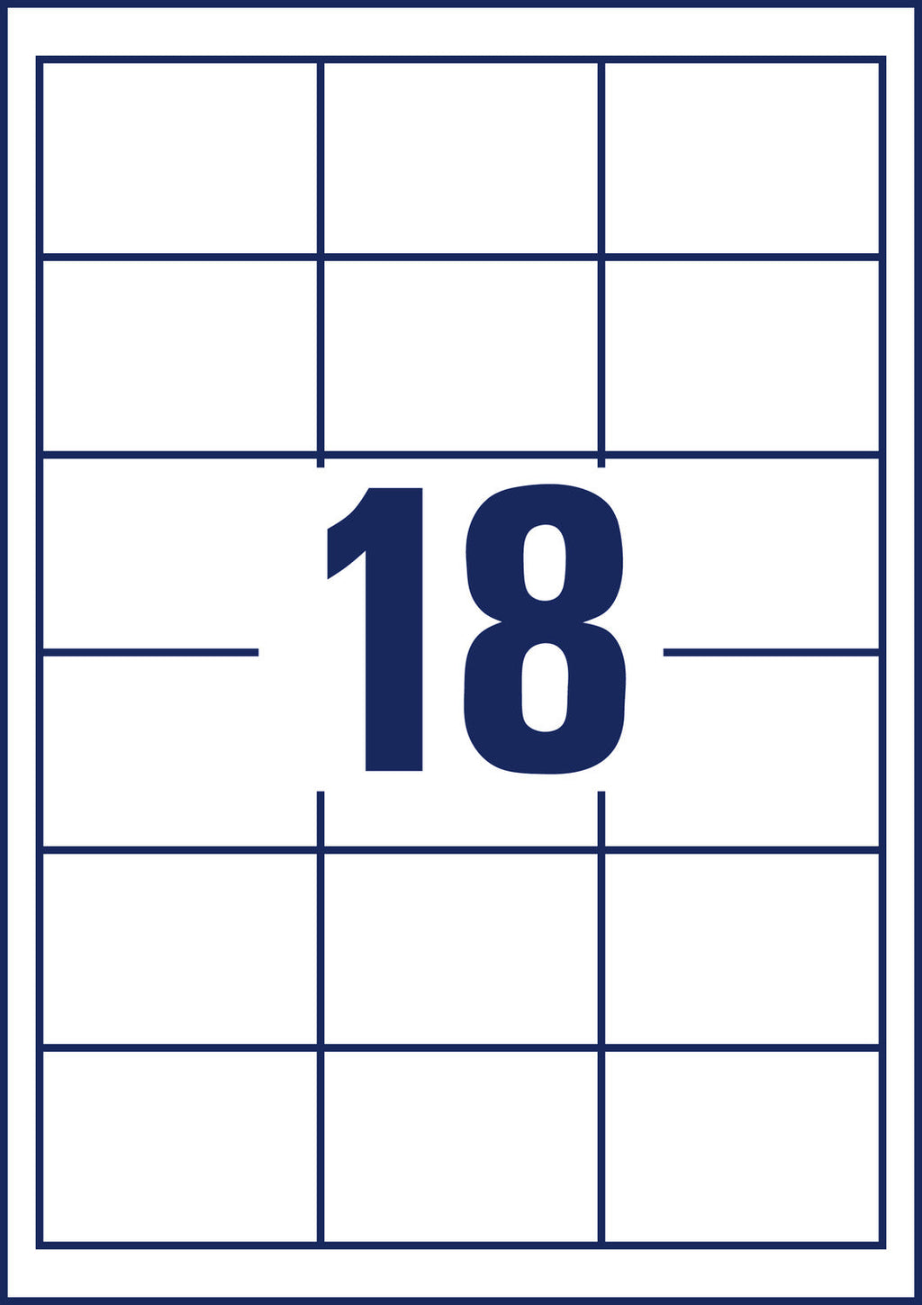 V zavitku je 100 listov, vseh etiket je 1800. Nalepke imajo permanentno lepilo in zanesljiv oprijem na različnih podlagah. Primerne so za tiskanje z vsemi standardnimi tiskalniki. Imajo FSC® certifikat - izvor lesa je iz zanesljivih virov. Ultragrip tehnologija zagotavlja tiskanje brez zastoja. QuickPEEL omogoča preprosto in hitro odlepljanje etiket od podlage. Za oblikovanje uporabite brezplačni program, dostopen je na www.avery-zweckform.si.