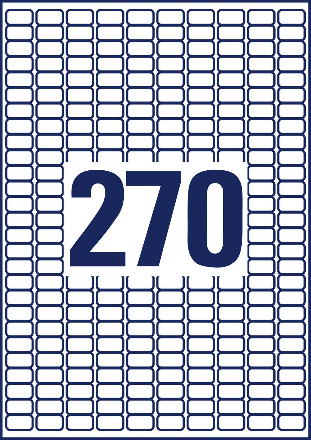 V zavitku je 30 listov, vseh etiket je 8100. Nalepke imajo odstranljivo lepilo in zanesljiv oprijem na različnih podlagah. Primerne so za tiskanje z vsemi standardnimi tiskalniki. Idealne so za začasno označevanje. Etikete imajo FSC® certifikat - izvor lesa je iz preverjenih in zanesljivih virov. Za oblikovanje uporabite brezplačni program, dostopen je na www.avery-zweckform.si.