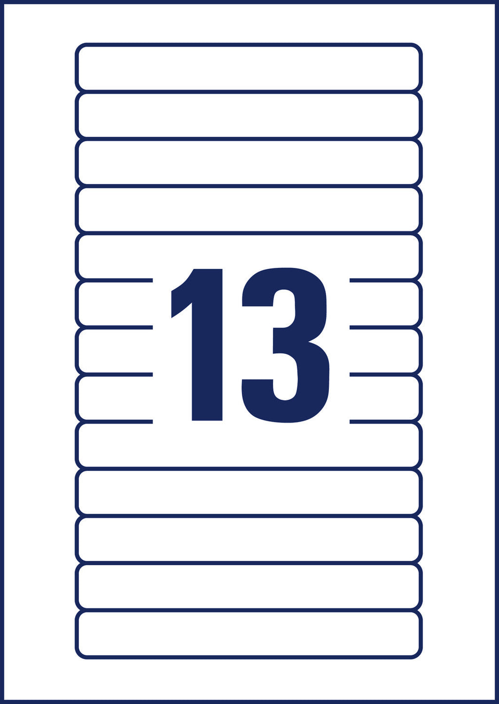 V zavitku je 25 listov, vseh etiket je 325. Nalepke imajo odstranljivo lepilo in zanesljiv oprijem na različnih podlagah. Primerne so za tiskanje z vsemi standardnimi tiskalniki. Idealne so za začasno označevanje. Etikete imajo FSC® certifikat - izvor lesa je iz preverjenih in zanesljivih virov. Za oblikovanje uporabite brezplačni program, dostopen je na www.avery-zweckform.si.