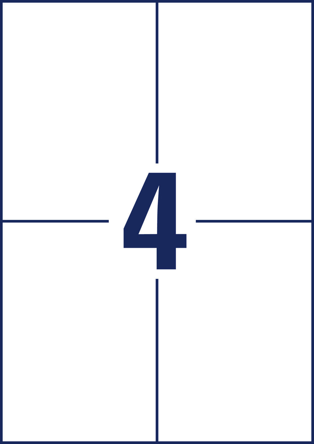 V zavitku je 100 listov, vseh etiket je 400. Nalepke imajo permanentno lepilo in zanesljiv oprijem na različnih podlagah. Material za etikete je izdelan iz 100 % odpadnega papirja, ki je beljen brez klora, lepilo je izdelano na vodni osnovi. Etikete imajo okolijski znak Blue Angel. Primerne so za tiskanje z vsemi standardnimi tiskalniki. Za oblikovanje uporabite brezplačni program, dostopen je na www.avery-zweckform.si.