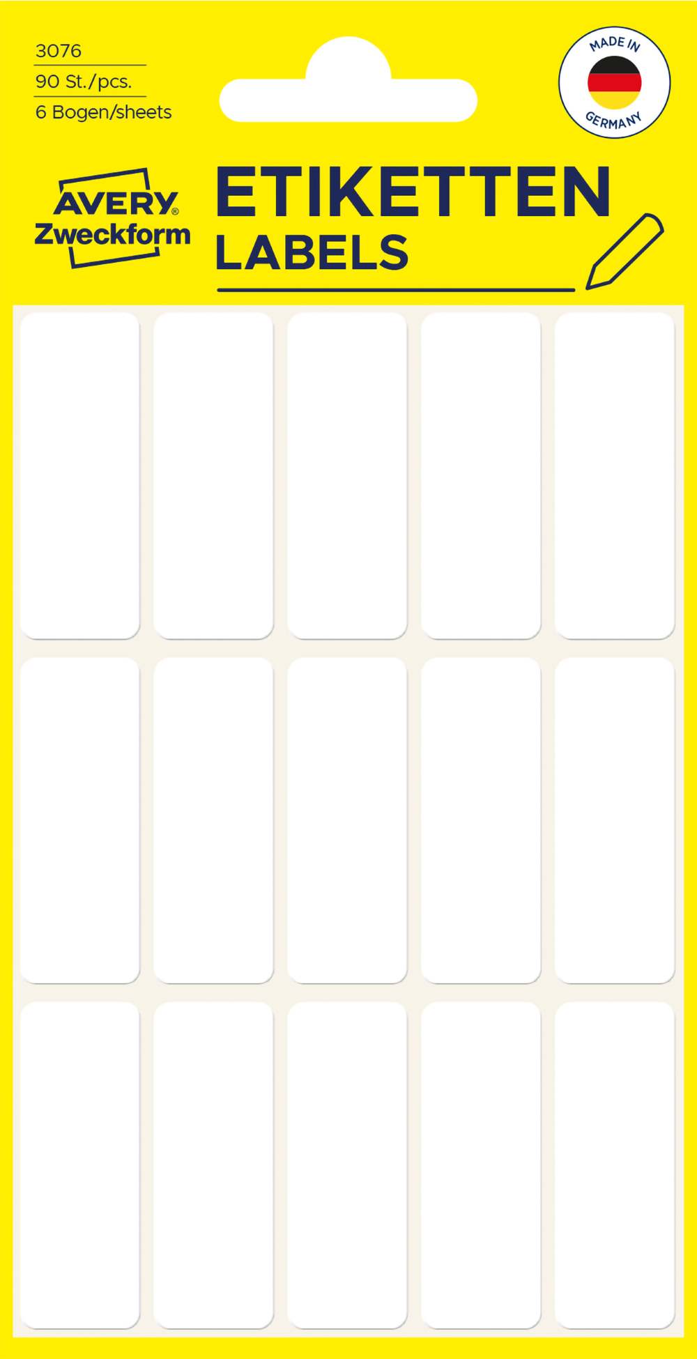 V zavitku je 6 listov, vseh etiket je 90. Nalepke imajo permanentno lepilo in so idealne za označevanje tako na delovnem mestu kot doma. Namenjene so za ročno pisanje z običajnimi pisali in niso primerne za tiskanje. Beljene so brez klora in so 100 % izdelane iz papirja s certifikatom FSC® - izvor lesa je iz preverjenih in zanesljivih virov.