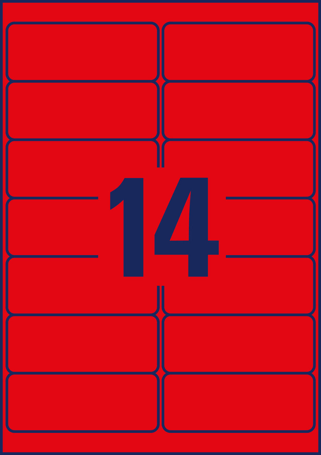 V zavitku je 25 listov, vseh etiket je 350. Nalepke imajo odstranljivo lepilo in zanesljiv oprijem na različnih podlagah. Primerne so za tiskanje z vsemi standardnimi laserskimi tiskalniki. Idealne so za začasno označevanje. Etikete imajo FSC® certifikat - izvor lesa je iz preverjenih in zanesljivih virov. Za oblikovanje uporabite brezplačni program, dostopen je na www.avery-zweckform.si.