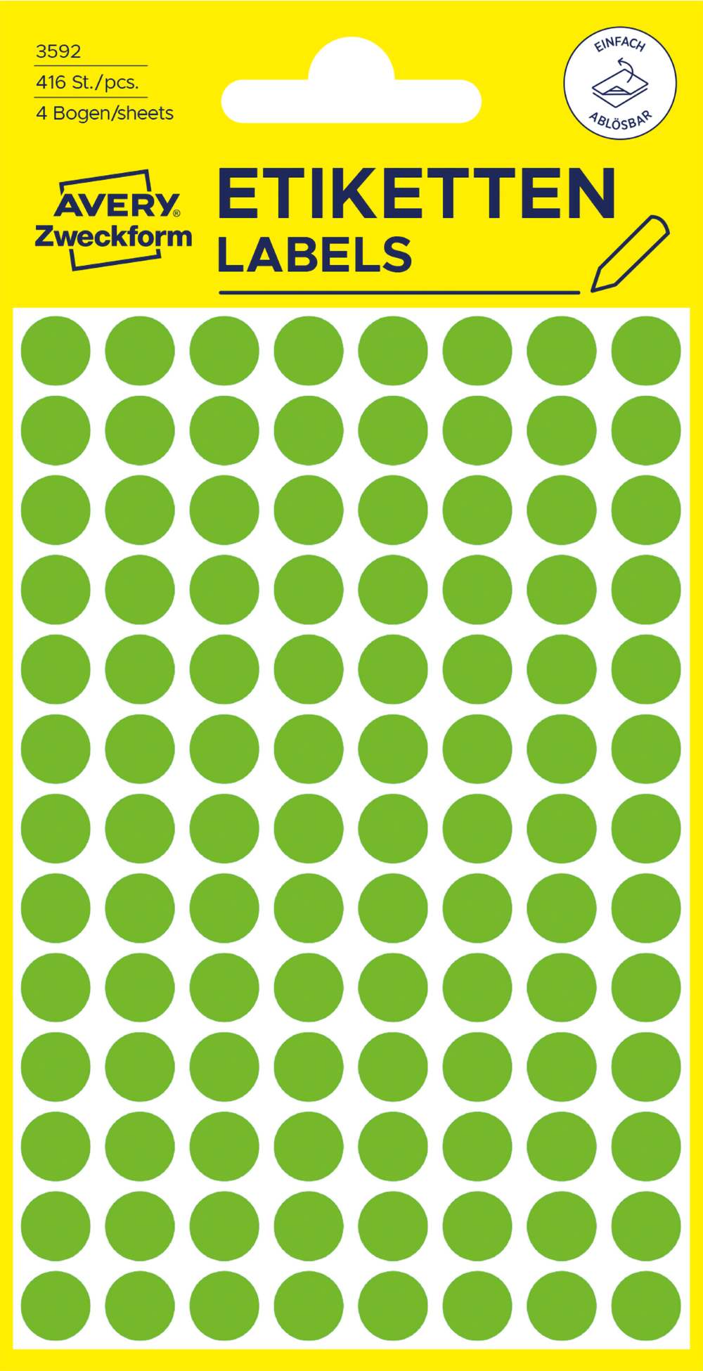Nalepke imajo permanentno lepilo in so idealne za označevanje, organiziranje, razporejanje in načrtovanje. Beljene so brez klora in so 100 % izdelane iz papirja s certifikatom FSC® - izvor lesa je iz preverjenih in zanesljivih virov. Niso primerne za tiskanje. Na voljo v dveh premerih: večje, premera 18 mm (v pakiranju je 96 etiket) in manjše, premera 8 mm (v pakiranju je 416 etiket).