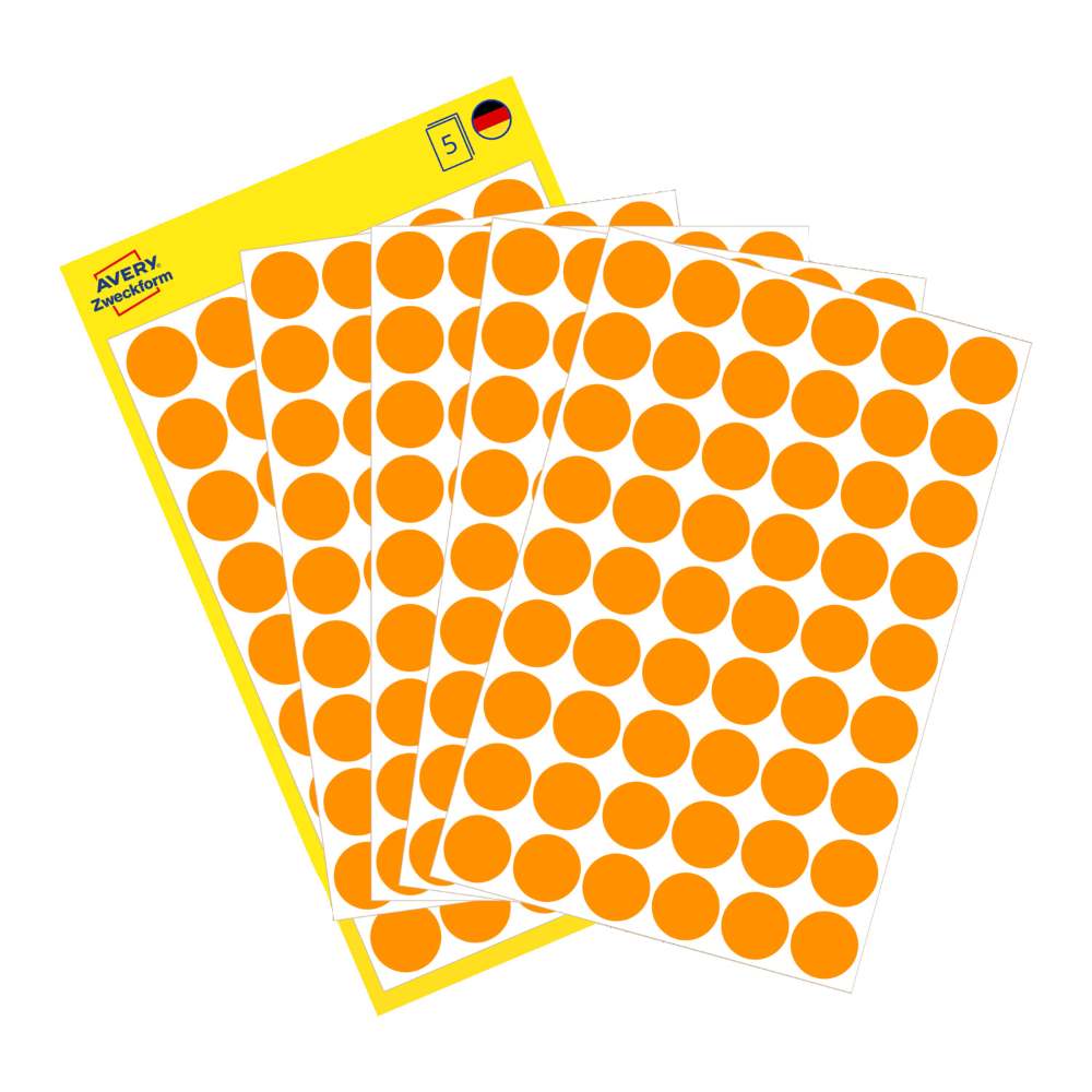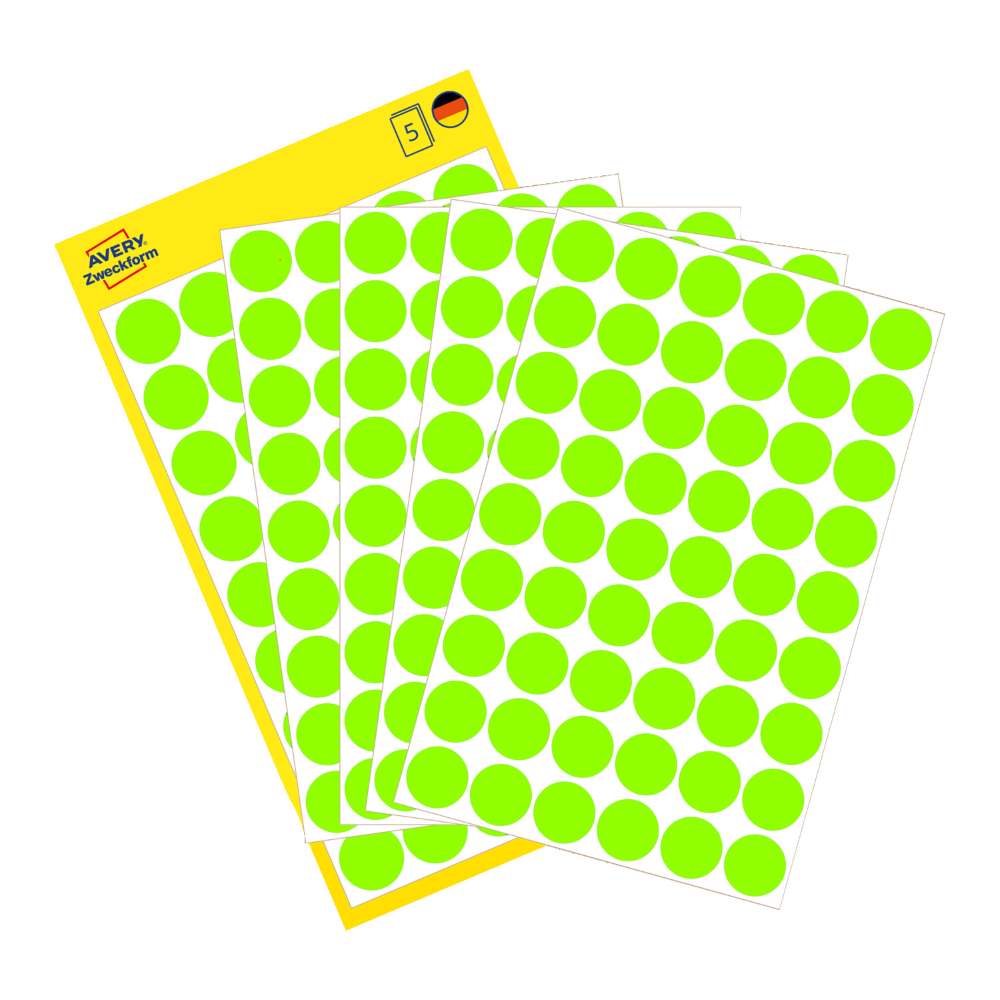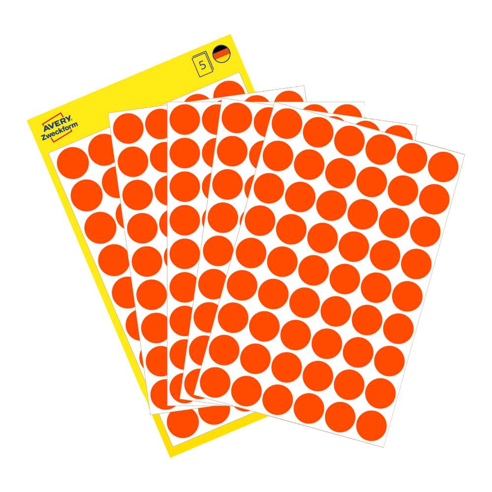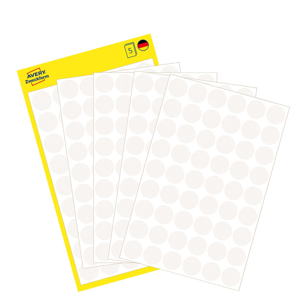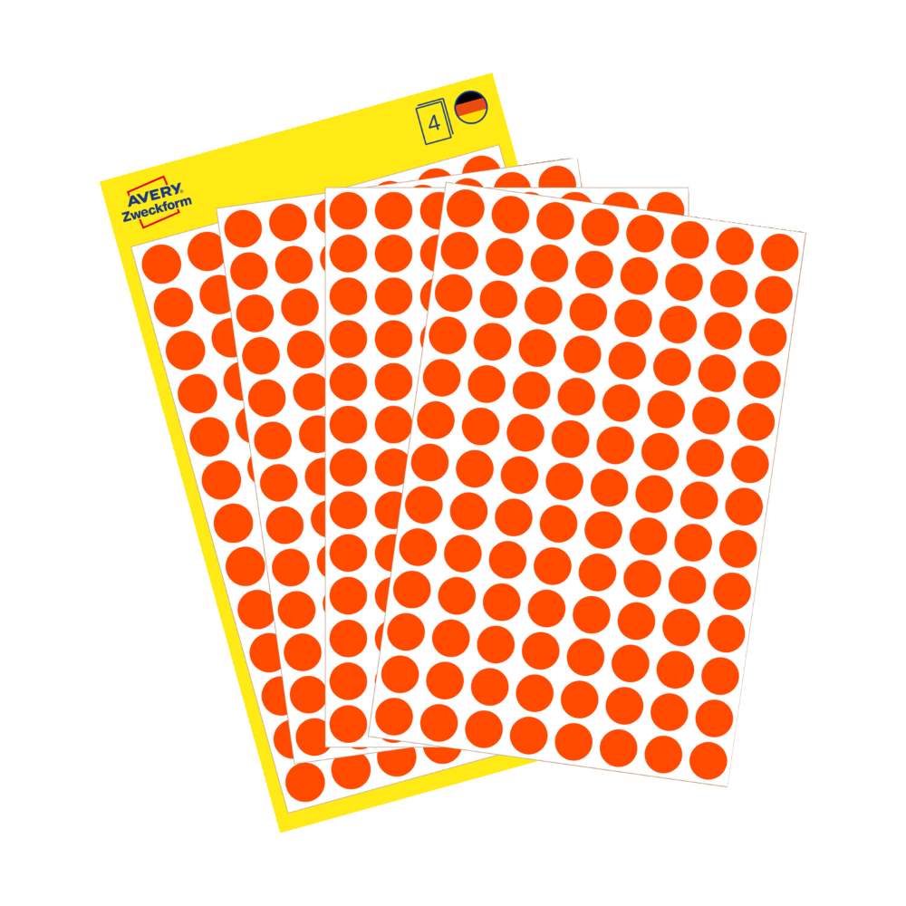 Na voljo v dveh velikostih: manjše, premera 8 mm (v zavitku so 4 listi, skupaj 416 etiket), srednje, premera 12 mm (v zavitku je 5 listov, skupaj 270 etiket) ali večje, premera 18 mm (v zavitku v zavitku so 4 listi, skupaj 96 etiket).
