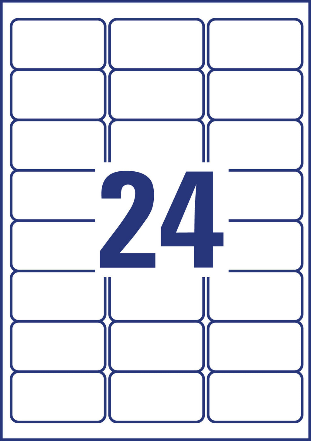 V zavitku je 20 listov, vseh etiket je 480. Nalepke imajo permanentno lepilo in zanesljiv oprijem na različnih podlagah. Primerne so za tiskanje z laserskimi tiskalniki. Se ne trgajo in so odporne na olje, umazanijo, UV žarke, temperaturo in vodo. Idealne so za trajno označevanje. Etikete ne vsebujejo PVC in so proizvedene podnebno nevtralno. Za oblikovanje uporabite brezplačni program, dostopen je na www.avery-zweckform.si.