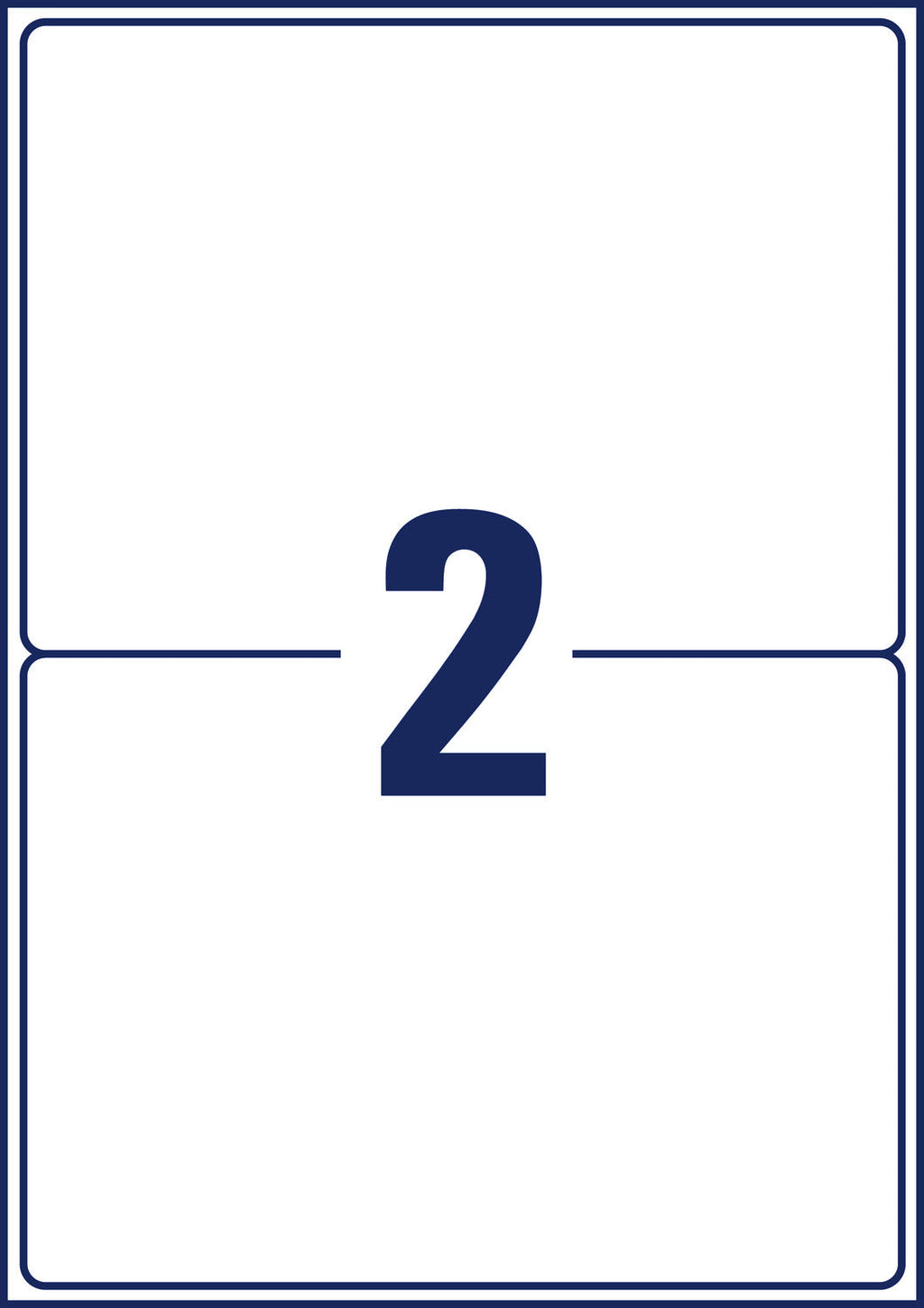 V zavitku je 25 listov, vseh etiket je 50. Nalepke imajo permanentno lepilo in zanesljiv oprijem na različnih podlagah. Primerne so za tiskanje z laserskimi tiskalniki. Se ne trgajo in so odporne na olje, umazanijo, UV žarke, temperaturo in vodo. Idealne so za označevanje paketov. Etikete ne vsebujejo PVC in so proizvedene podnebno nevtralno. Za oblikovanje uporabite brezplačni program, dostopen je na www.avery-zweckform.si.