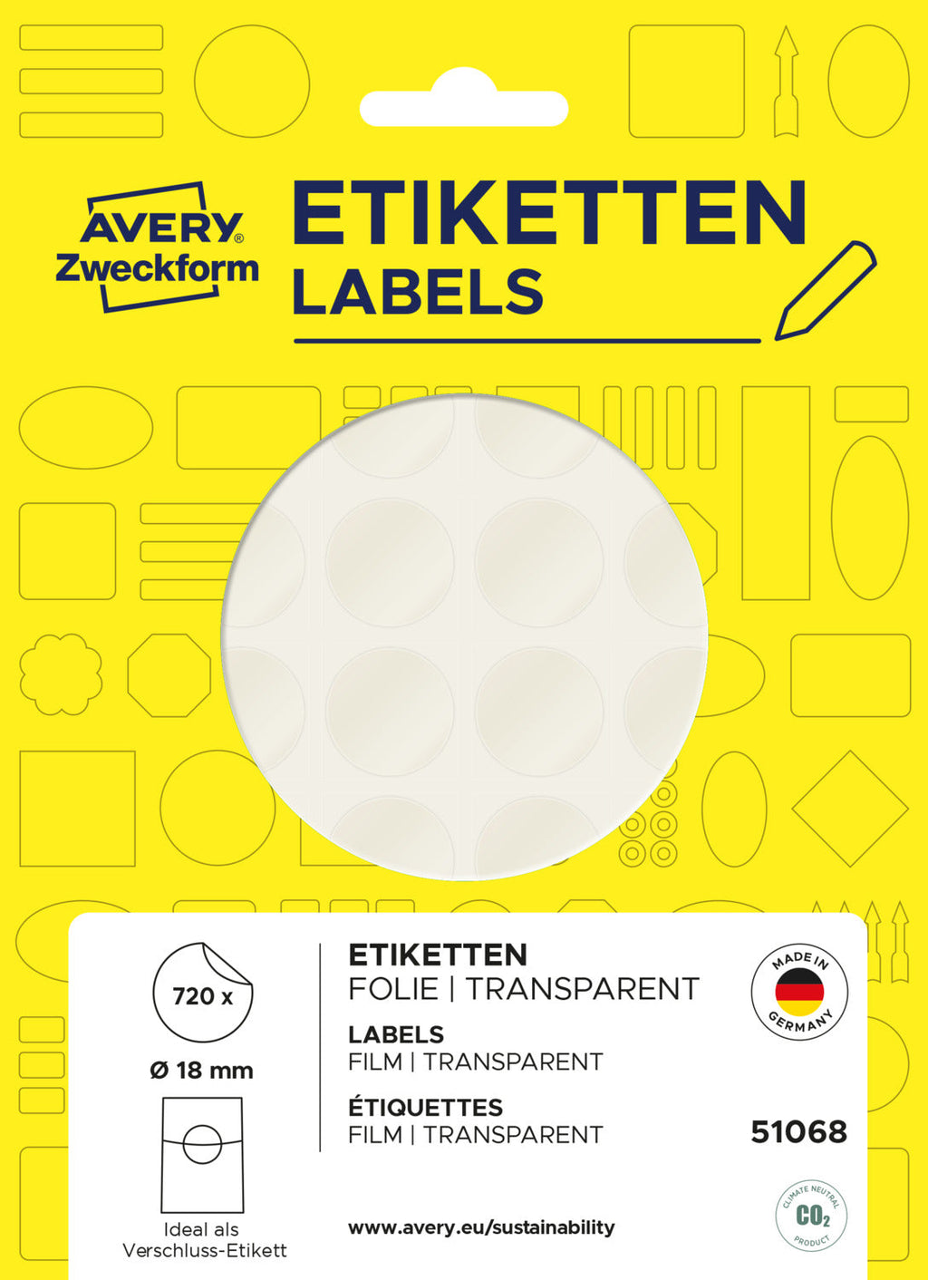 Etikete transparentne okrogle za pečatenje Avery Zweckform 51068, fi 18 mm