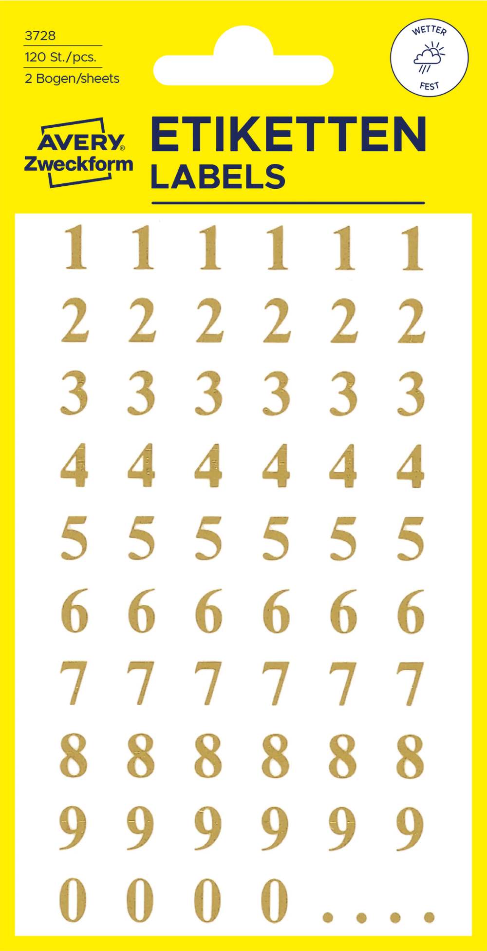 Etikete zlate številke Avery Zweckform 3728, 7,5 mm