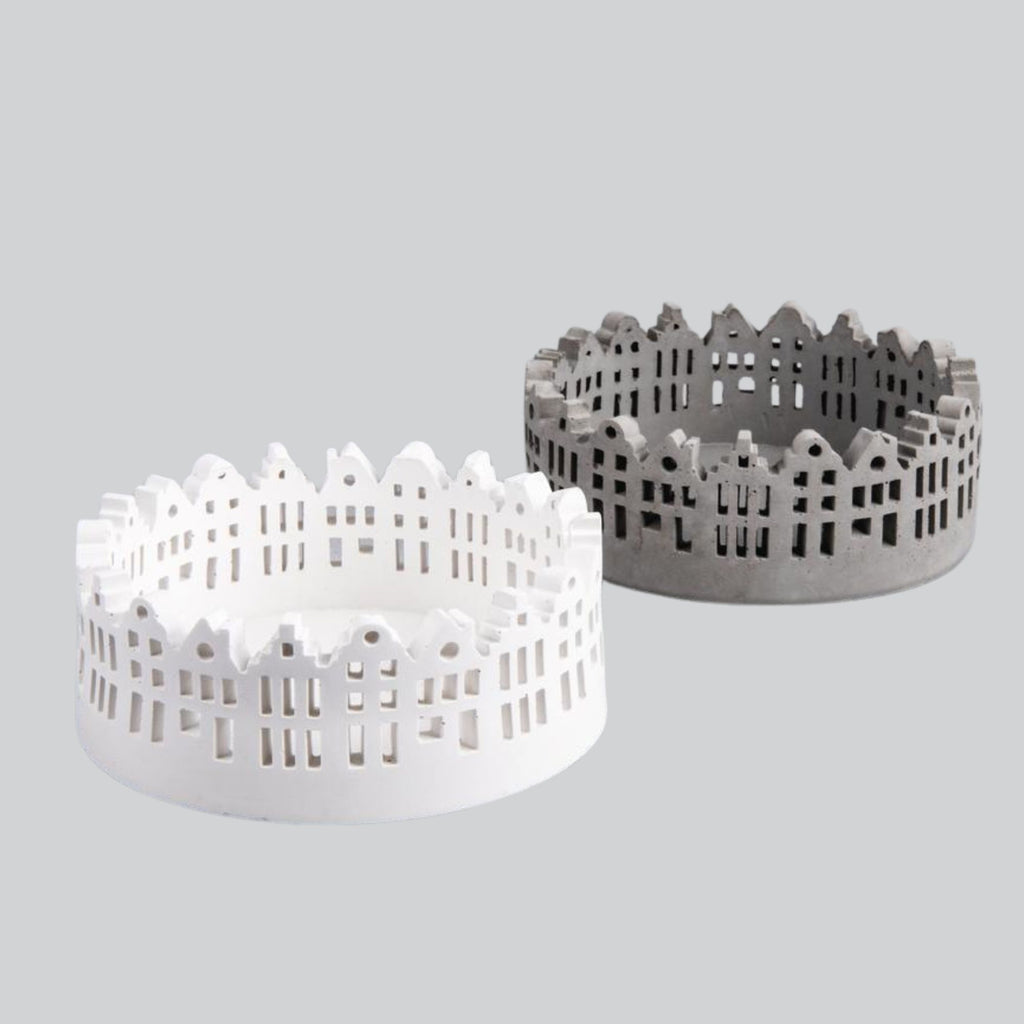 Silikonski model za vlivanje – posodica z robom motivi hišk, premer 13,2 cm, višina 5 cm.