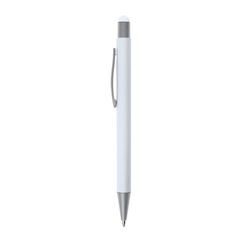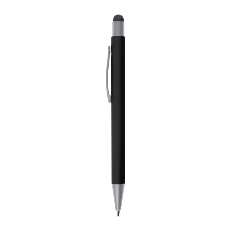 Kovinski kemični svinčnik, z gumiranim oprijemom in s konico za zaslon na dotik.