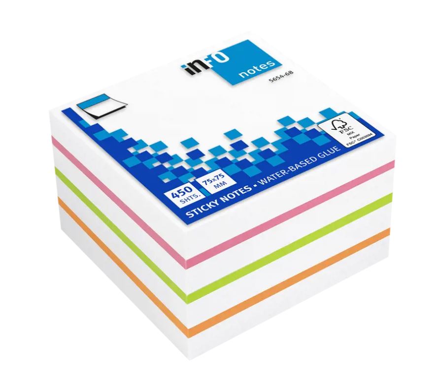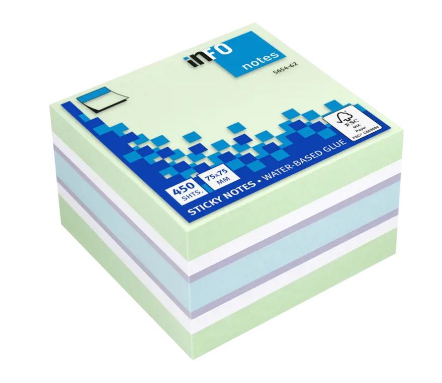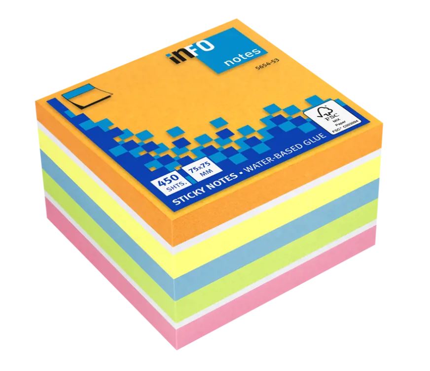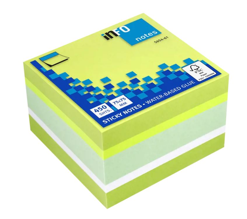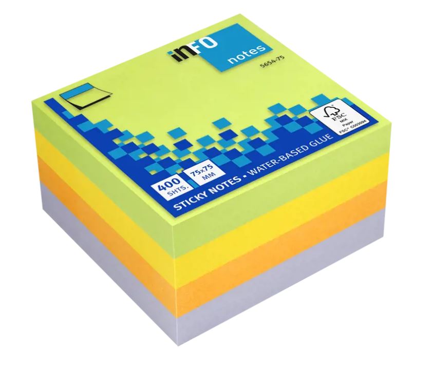 Kvalitetne, elegantne in okolju prijazne samolepljive kocke Info so odlična rešitev za beleženje, organiziranje dela ali puščanje opomnikov in sporočil. Za uporabo v pisarni, doma, šoli oziroma povsod, kjer želimo pustiti kratko in vidno sporočilo.