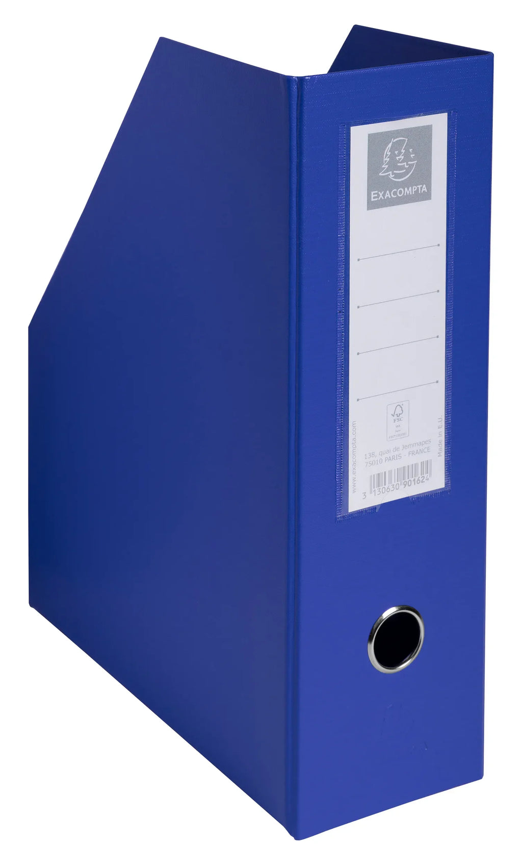 Kartonski odložni košek za revije, izdelan iz kartona, prevlečenega s PP, je dobavljen v ploskem stanju. Preprost za sestavo, omogoča organizacijo revij in dokumentov. Privarjeno držalo za etikete z vstavkom za kartice omogoča enostavno prepoznavanje vsebine. Odprtina za prst za enostavno rokovanje. (A4 - 23 x 31 cm).
