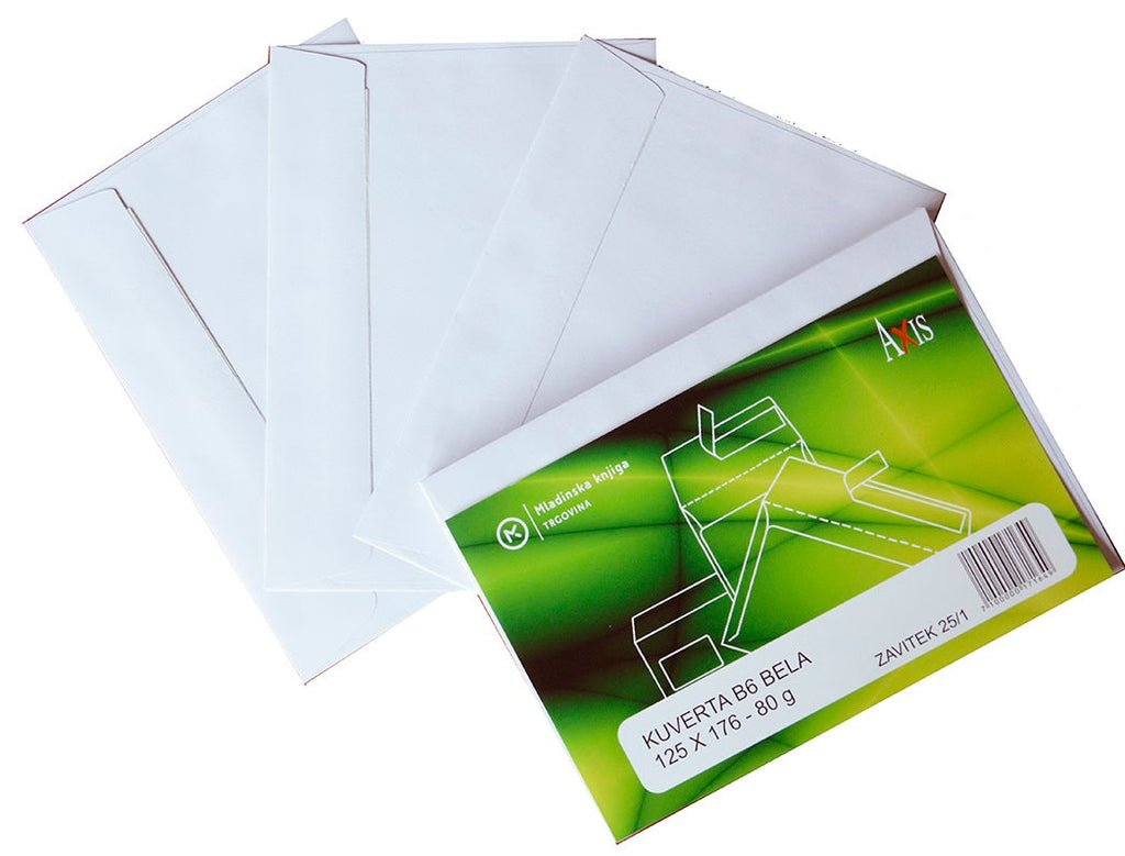 Kuverta Axis B6 BD SI 125x176 mm, 80 g, 310072, bela, zavitek