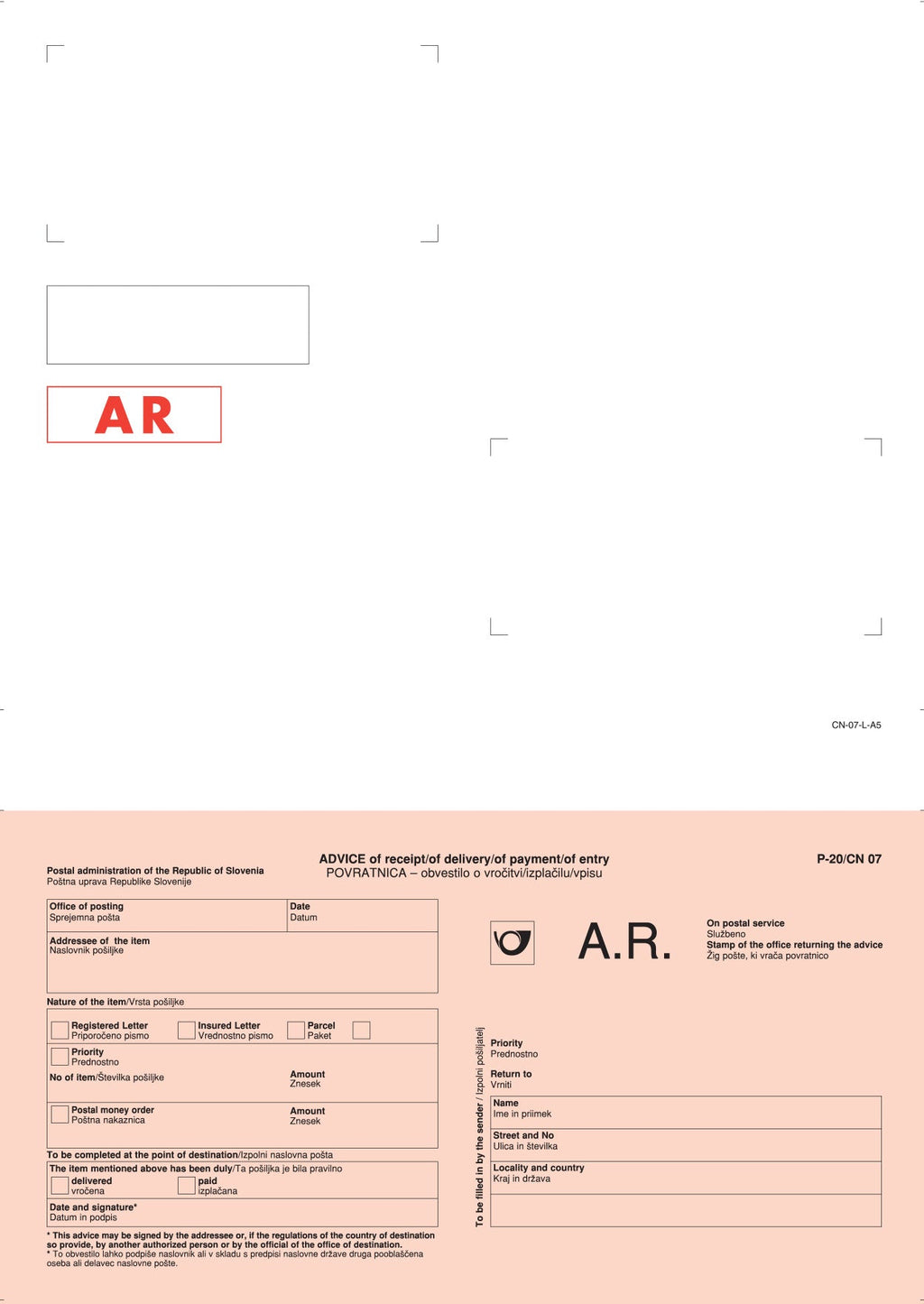 Kuverta s povratnico, žep A5, kuverta, A4, pakirano po 1000 kos, za laserski tiskalnik 07CN