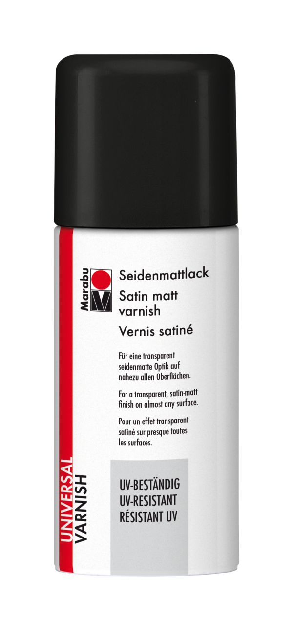 Prozoren lak v spreju na osnovi topil Marabu Varnish v 3 variacijah sijaja: Clear (visoki sijaj), Matt (mat) in Satin (satenast, svilnat lesk). Lak ustvari brezbarvno prevleko (sijaj, mat ali saten), ki izdelek zaščiti pred vodo in atmosferskimi vplivi. Lak se ne razmaže zlahka in je odporen na vodo. Primeren je za skoraj vse materiale: papir, karton, lepenko, kovino, les, steklo, materiale za modeliranje in oblikovanje, kamen, plastiko; primerni so tudi za uporabo na stiroporju. Lak se suši do 30 min. Na voljo v 3 variacijah, v 150 ml ali 400 ml spreju.