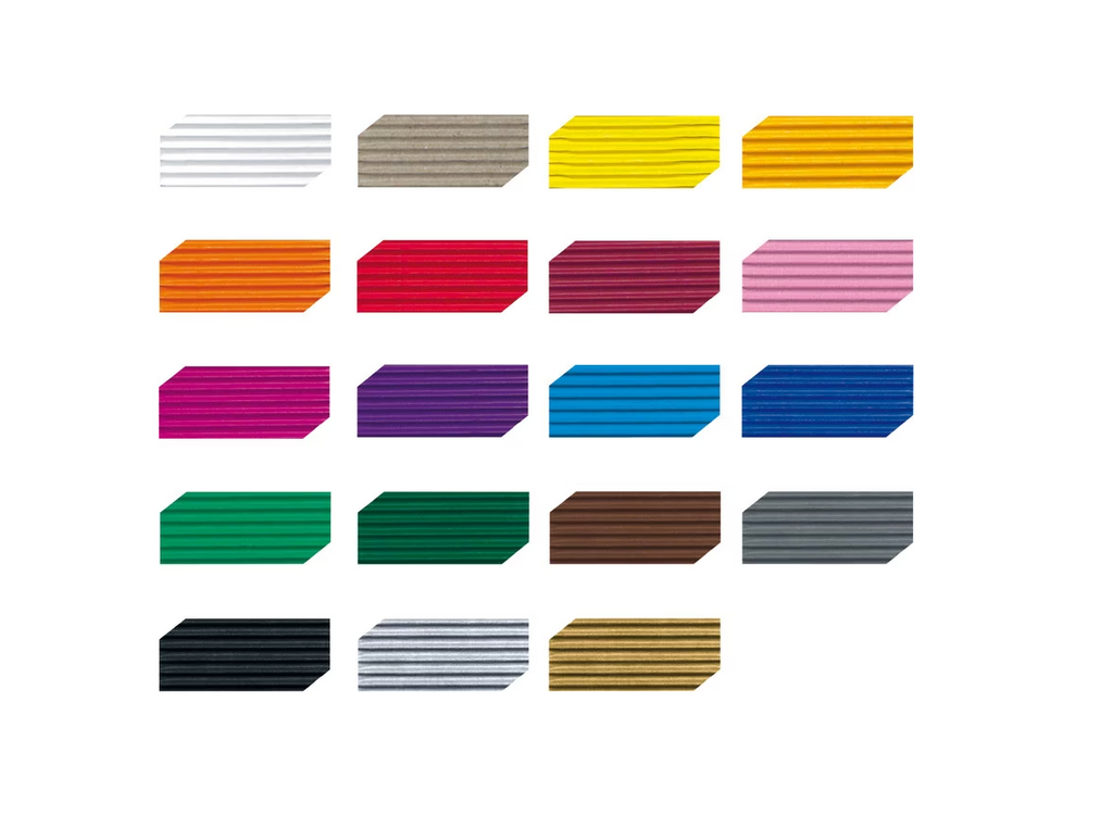 Valovita lepenka v velikosti B2 (50 x 70 cm). V zavitku je 10 pol. Namenjena je za izdelovanje različnih okrasnih in darilnih embalaž. Primerna za kreativno ustvarjanje v vrtcih, šolah in prostem času. V ponudbi tudi zlata, srebrna sortirana valovita lepenka.