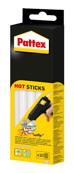 Lepilni vložki Pattex za vroče lepljenje se uporabljajo s pištolo za vroče lepljenje. Lepilo je primerno za lepljenje kartona, lesa, lesenih materialov, kovine, gume, plastike in keramike. Prozorno in elastično lepilo z visoko končno trdnostjo. Zlepi zelo hitro, v manj kot 2 minutah. Primerno je za povezovanje kratkih lesenih letvic, lepljenje kartona, pritrjevanje tečajev, lepljenje okvirjev in ostalih materialov. V pakiranju je 10 vložkov oziroma 200g.