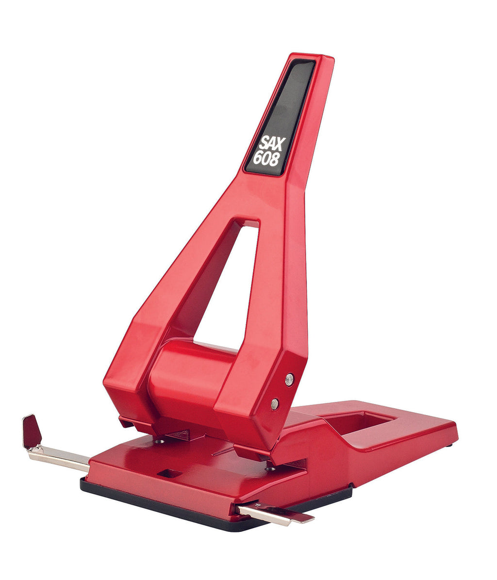 Zmogljivejši luknjač Sax 608 je primeren za zahtevnejšo uporabo tako v pisarni kot tudi doma. Omogoča luknjanje večjih količin papirja in posledično poskrbi za prihranek pri času. Njegova posebnost je kovinska ročica, ki omogoča enostavno luknjanje želene količine papirja. Luknjač ima kovinsko vodilo za lažjo nastavitev papirja. Na voljo v različnih barvah. 10 let garancije.