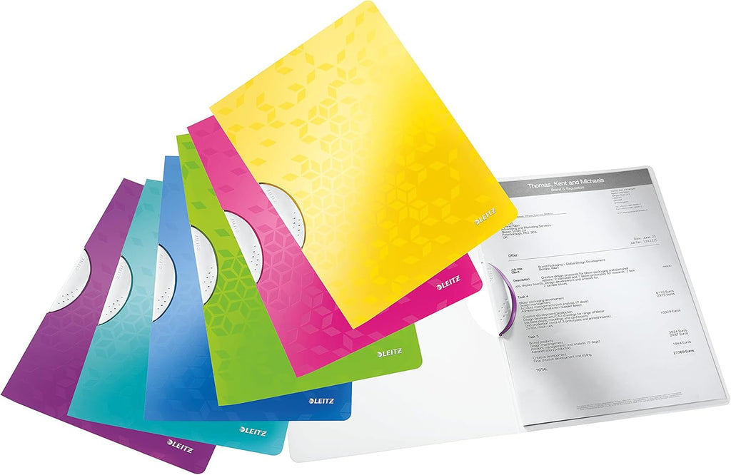 Mapa A4 Clip WOW iz polipropilena v različnih kovinskih barvah. Vpnemo lahko do 30 listov A4. Je idealna za domačo in pisarniško uporabo. Patentirana kovinsko plastična zaponka za enostavno vpenjanje dokumentov, ko mapo odpremo ostane odprta. Mapa je iz trpežne in odporne plastike. Dimenzije: 222 x 8 x 310. Na voljo v različnih barvah.