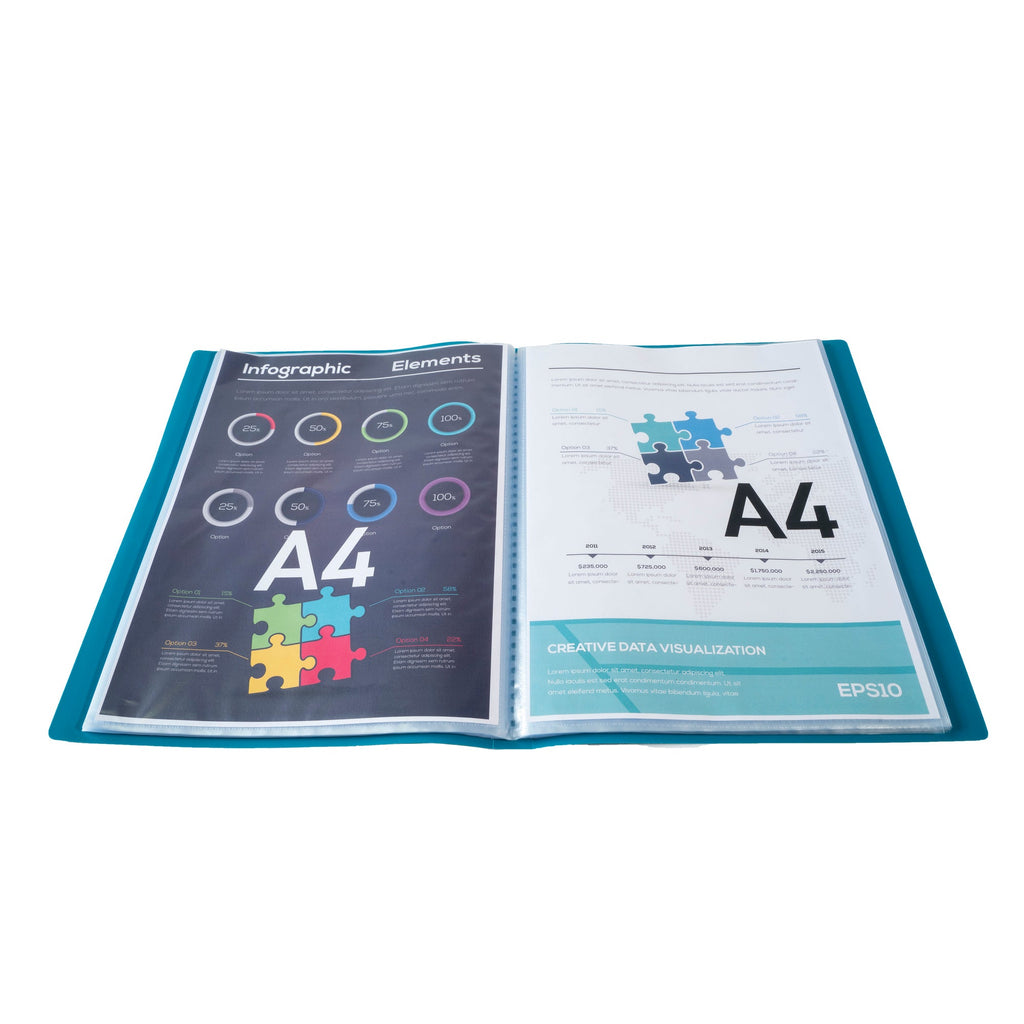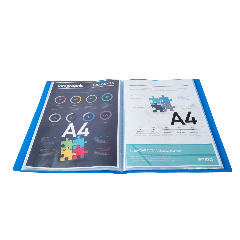 Mapa Chroma A4 "display" s 30 vložnimi ovojnicami in debelejšo platnico s reliefnim potiskom. Zunanje mere: 24 x 32 cm, teža: 190 g. Na voljo v različnih barvah.