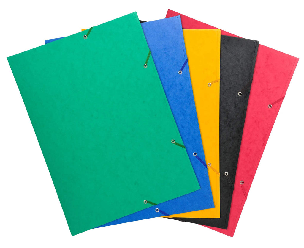 Kartonska mapa s klapo in elastiko A3 iz 600 gramskega kartona s tremi zavihki in elastiko. Shranjuje do 200 listov. 5 map v pakiranju. Na voljo različne barve.