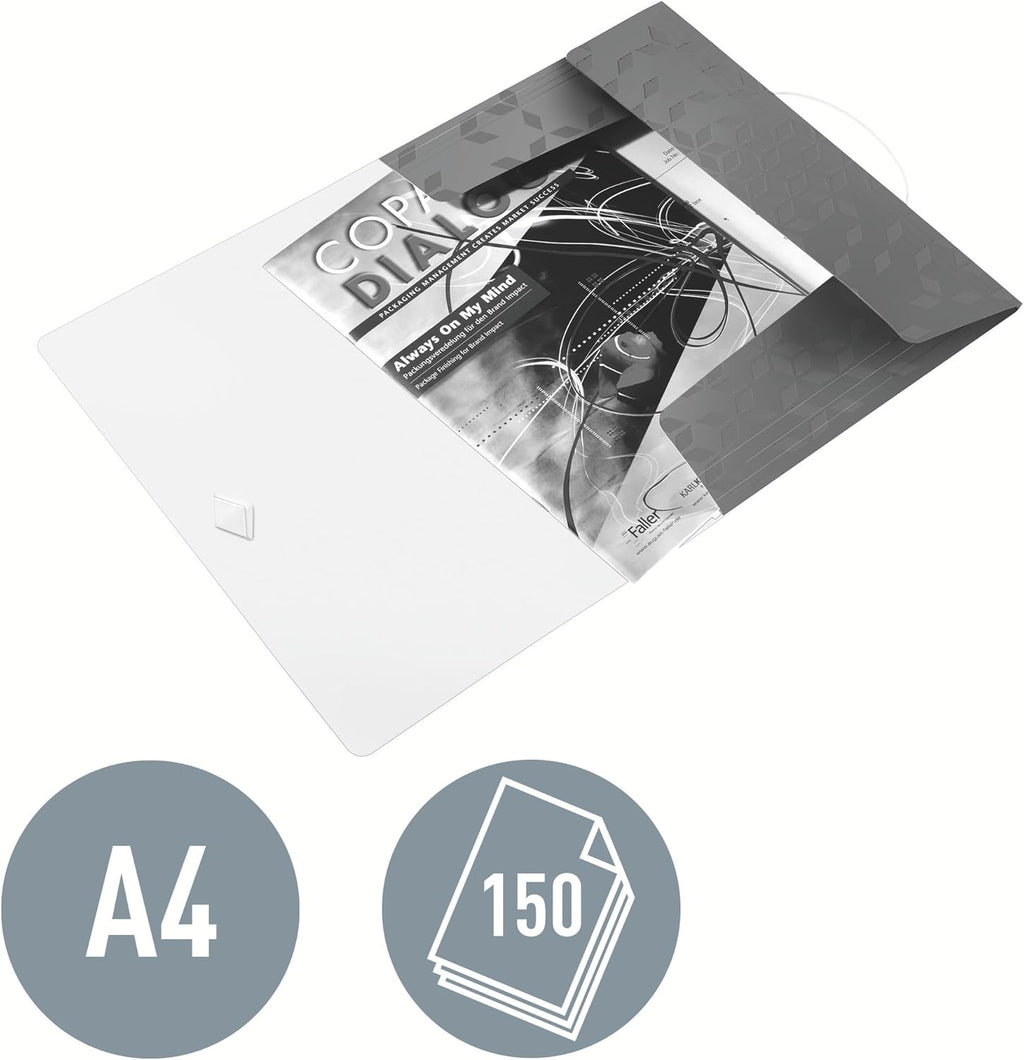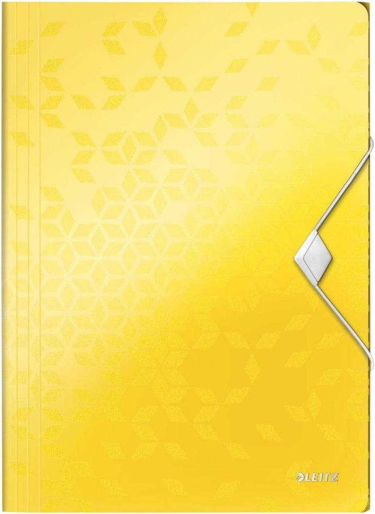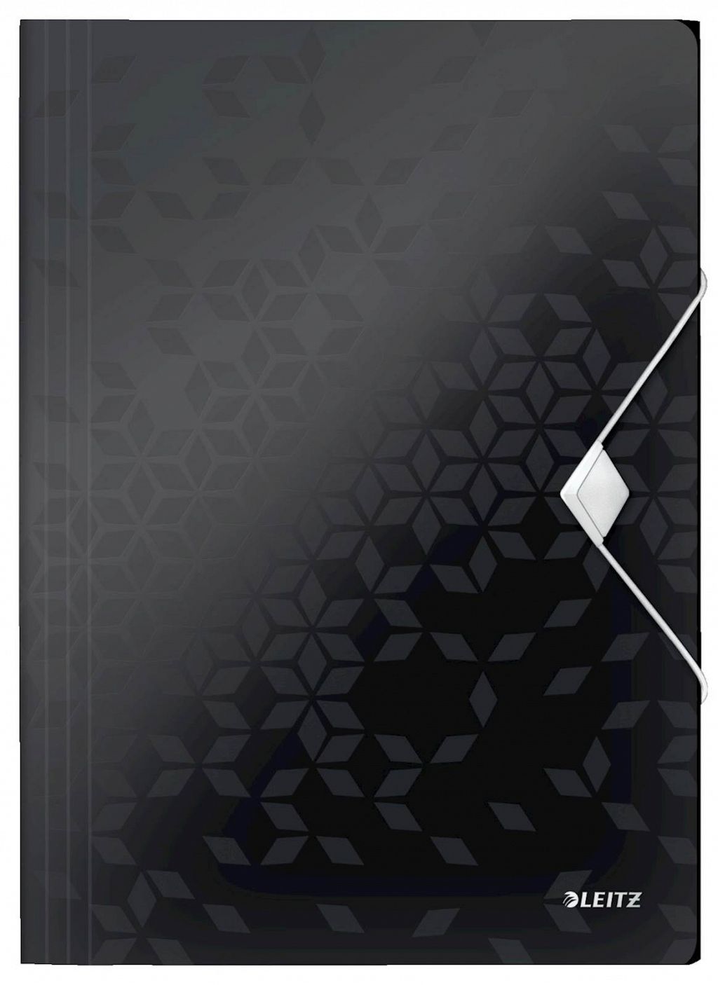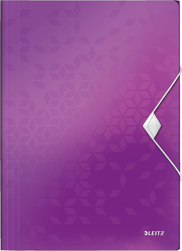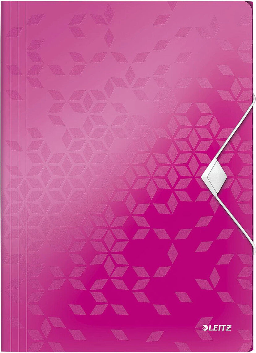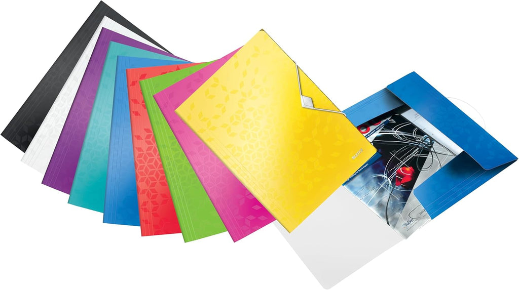 Trda mapa iz polipropilena s prevleko in z vtisnjenim vzorcem, z zavihki in elastiko, za varno hranjenje dokumentov. Platični zavihki so zapognjeni, kar omogoča prilagajanje debeline mape. Vložimo lahko do 150 listov (80 g/m2) A4 formata. Dimenzije mape: 235 x 8 x 320 mm. Iz Leitzove linije Wow. Na voljo v številnih barvah.