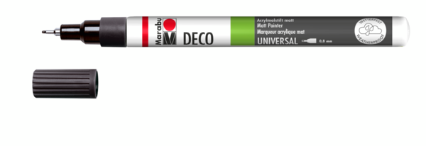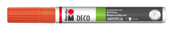 Mat akrilni marker na vodni osnovi Marabu Deco Painter ima dobro prekrivno črnilo, ki se hitro suši, je brez vonja in je dobro obstojno na svetlobi ter odporno na vremenske vplive. Marker je primeren za uporabo na številnih površinah, tudi vpojnih materialih kot so: papir, les, glina, kovina, mavec, plastika. Na voljo v različnih debelinah konice in v številnih barvah.