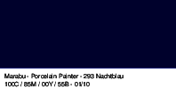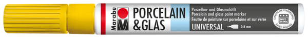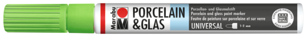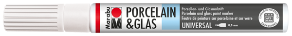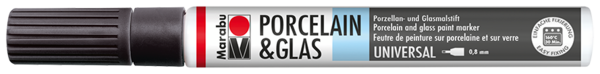 Visoko sijajni marker za barvanje porcelana, stekla, kovine, ogledal, keramike, terakote in kamna Marabu Porcelain & Glas Painter. Pisalo vsebuje poseben sistem za črpanje visoko pigmentnega črnila. Barve so izdelane na vodni osnovi, so brez vonja, obstojne na svetlobo. Barve se posušijo v 4 urah, utrjevanje pa traja 30 minut pri 160 °C. Po utrdjevanju (fiksiranju) barve so izdelki primerni za pomivanje v pomivalnem stroju (največ 50 °C).