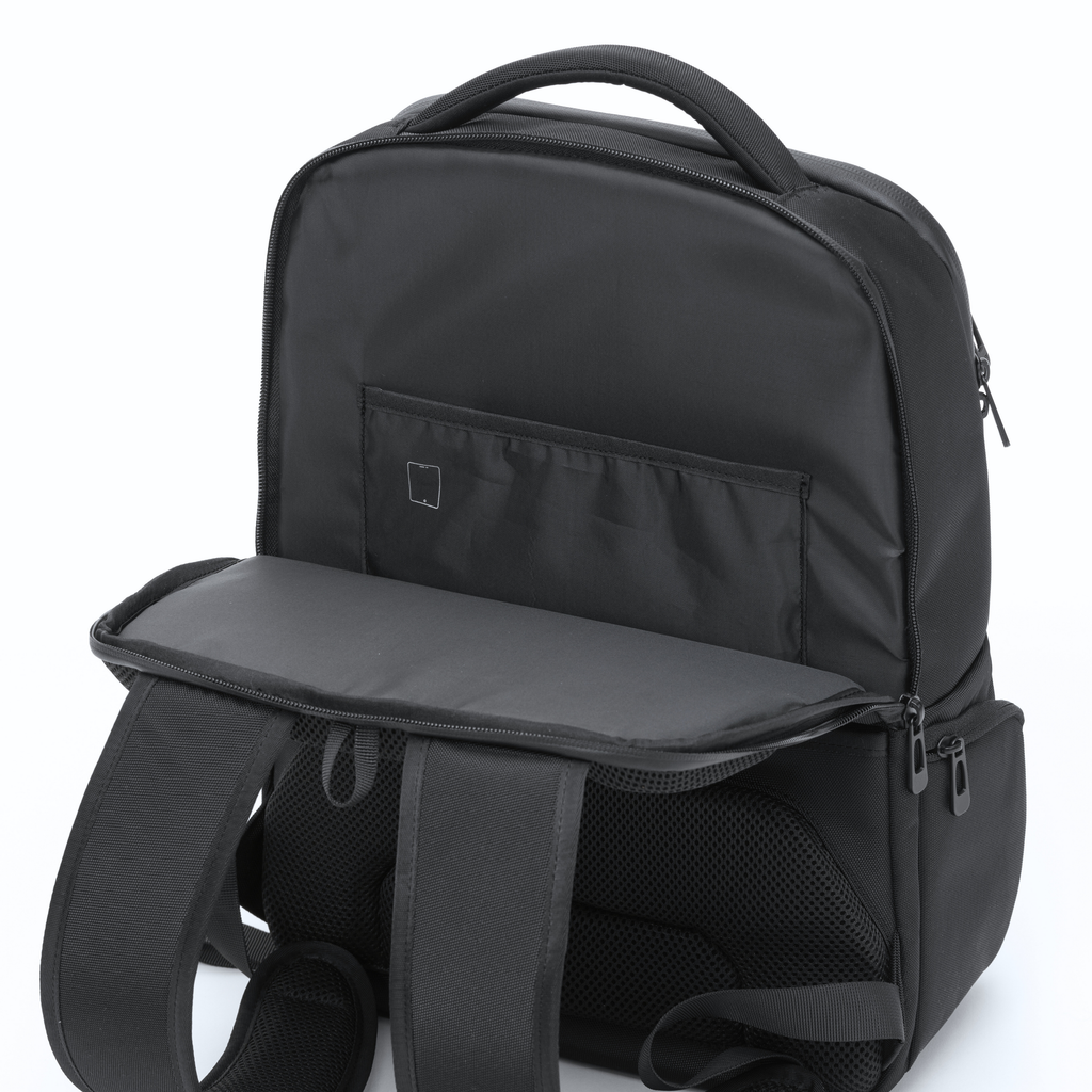 Nahrbtnik s tremi predalčki, oblazinjena razdelka za prenosnik do 15'' in tablico, več notranjih pregrad in zunanjih žepov za odlično organizacijo predmetov, sprednji žep z zadrgo, zračni hrbtni sistem, podložene nastavljive naramnice, priročen ročaj za enostavno prenašanje, popoln za potovanja, skrit žep na zadrgo na zadnji strani nahrbtnika.