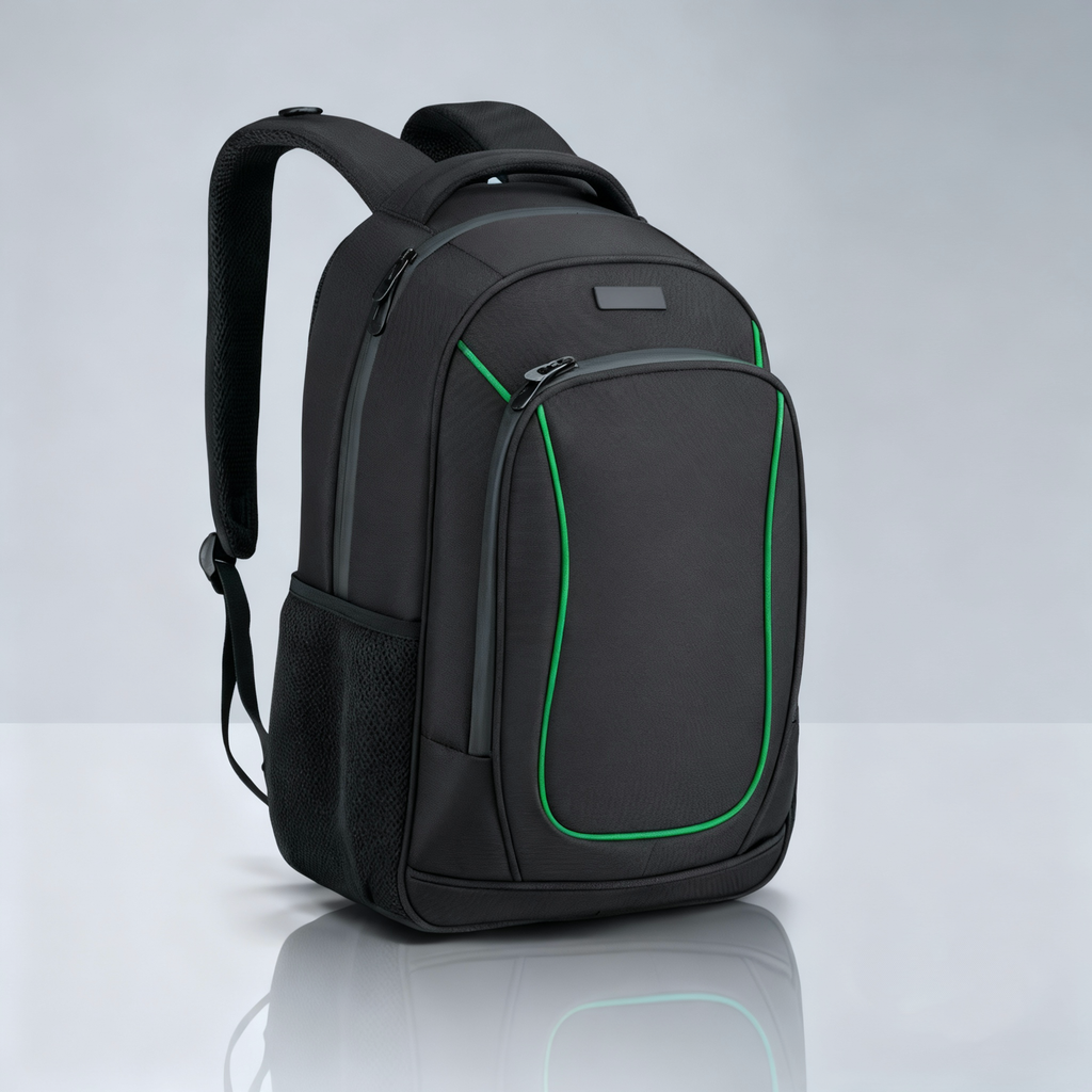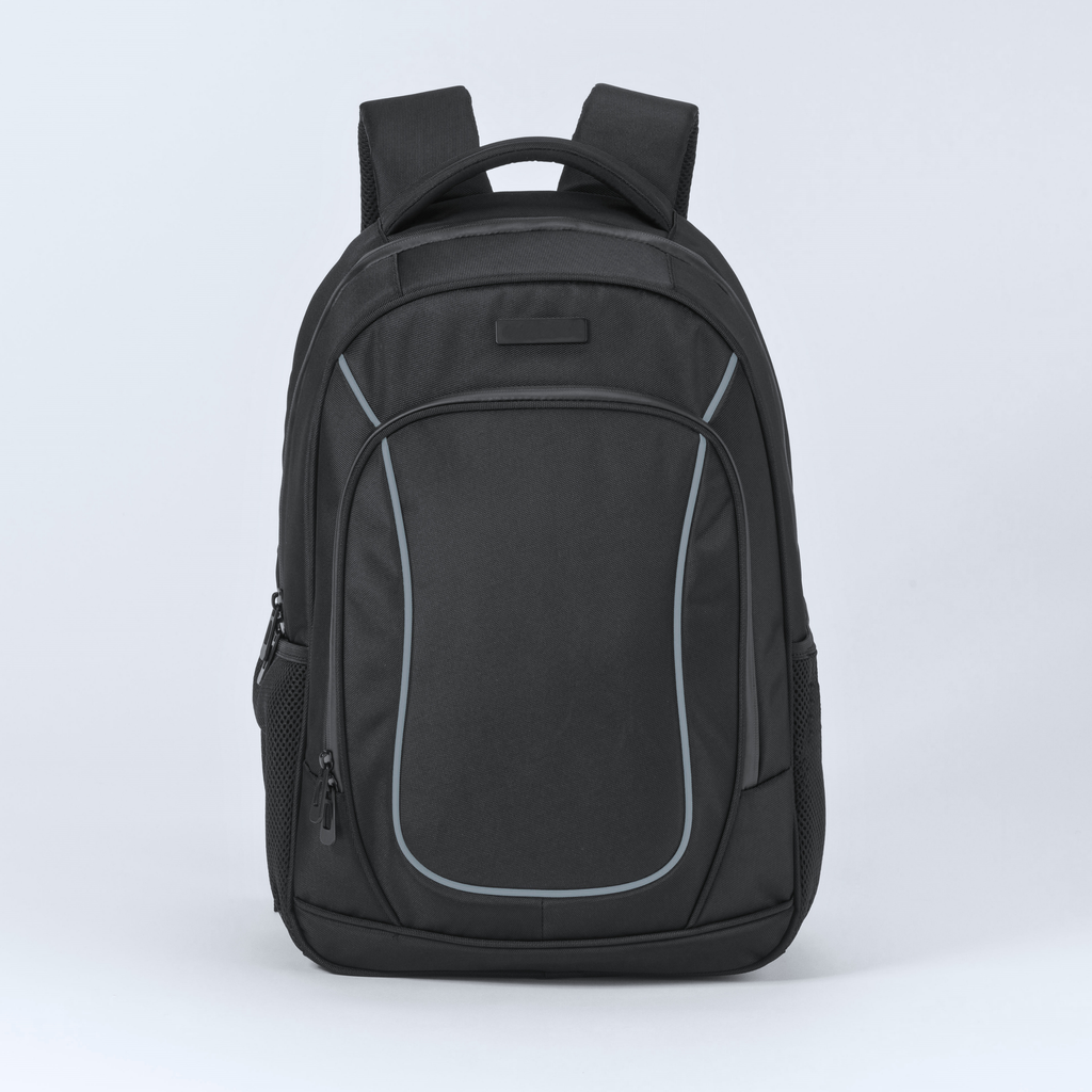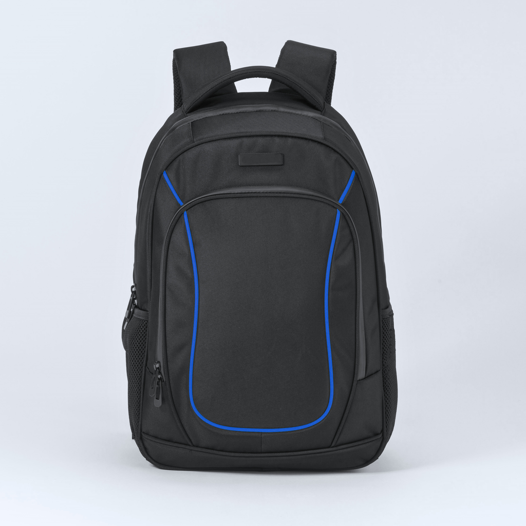 Z dvema predalčkoma, velik predal z zadrgo, sprednji žep z zadrgo, stranski mrežasti žep, podložene in nastavljive naramnice, zračni hrbtni sistem, iz poliestra 1260D, 21 l. 460 × 310 × 150 mm.