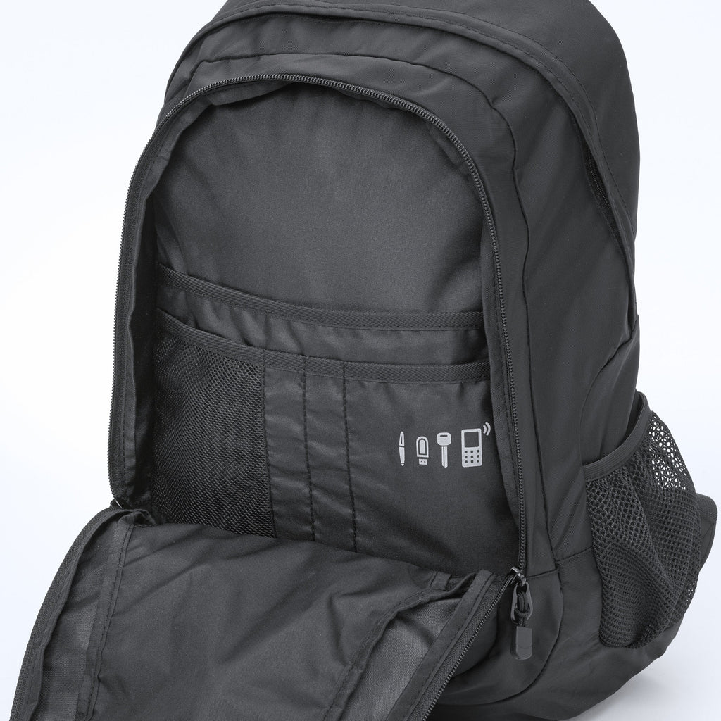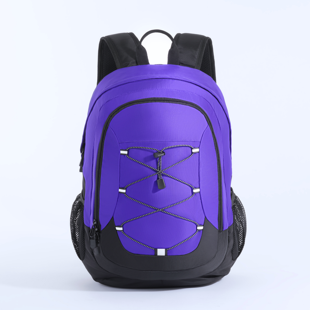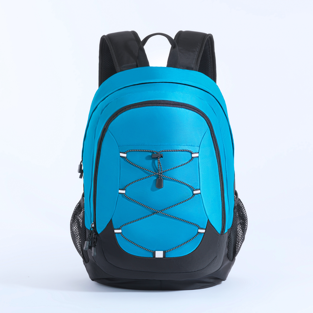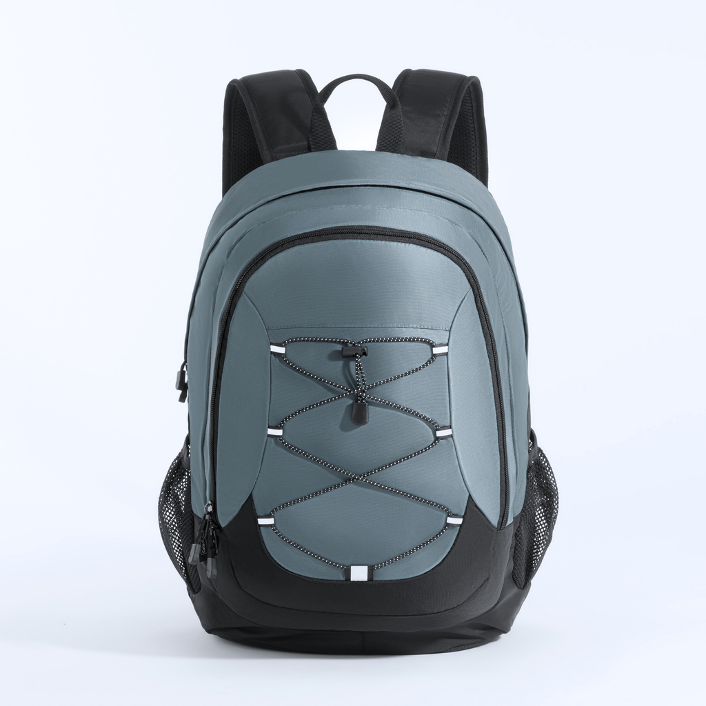 Funkcionalen športen nahrbtnik z dvema predalčkoma, elastične vrvice na sprednji strani omogočajo hitro pritrditev lahkih predmetov, stranska mrežasta žepa za manjše dodatke, ergonomski in zračni hrbtni del, podložene naramnice, prostoren glavni predal z zadrgo.