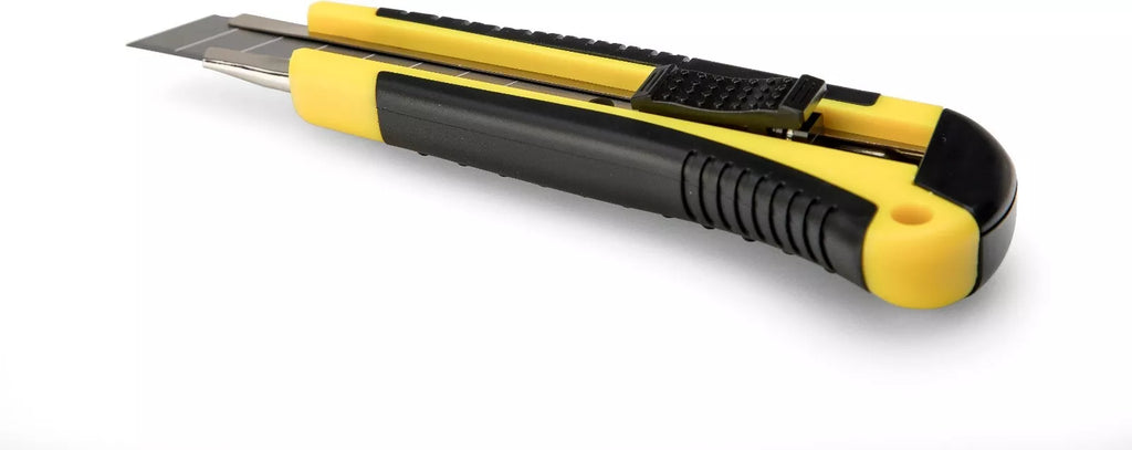 Profesionalni tapetniški nož za rezanje papirja, kartona in pakirnih materialov. Nož ima rezilo širine 18 mm in dolžine 100 mm. Skupna dolžina noža je 153 mm. Držalo je narejeno iz obstojnega ABS z gumijastim oprijemom, jeklenim vodilom rezila ter zaklopom. Nož ima tudi vgrajen prostor za dve dodatni rezili (priloženi).