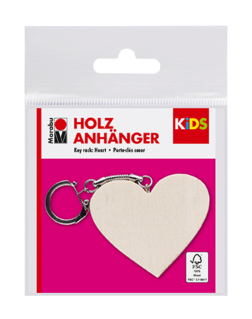 Marabu KiDS Key Chain je lesen obesek z pritrdilnim mehanizmom – popolna osnova za likovno ustvarjanje. Obeski so na voljo v različnih oblikah. Za okraševanje obeskov priporočamo barve Marabu Kids in Marabu Glitter Magic. Les iz katerega je narejen obesek ima certifikat FSC®. Primerno za otroke od 3. leta naprej.