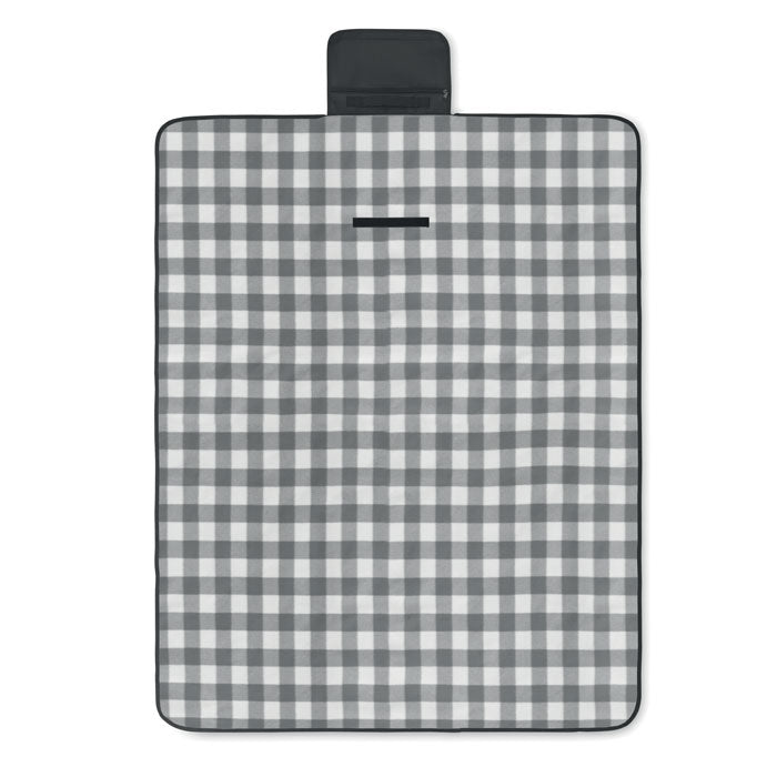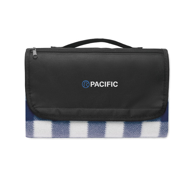 Piknik odeja iz polarnega flisa RPET 150 g, z vodoodporno prevleko PEVA hrbtne strani, sprednji žep z zadrgo in kratek pas za nošenje.