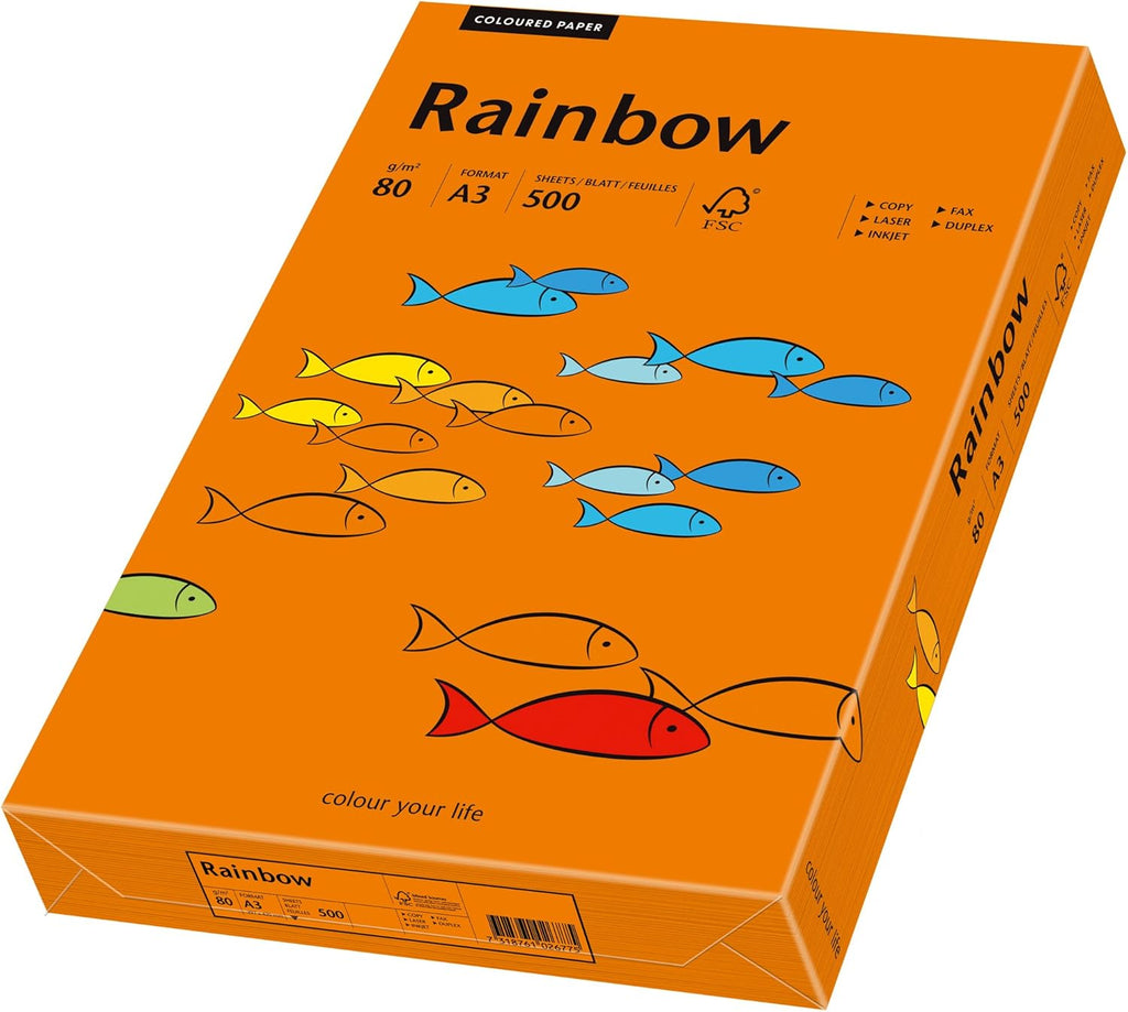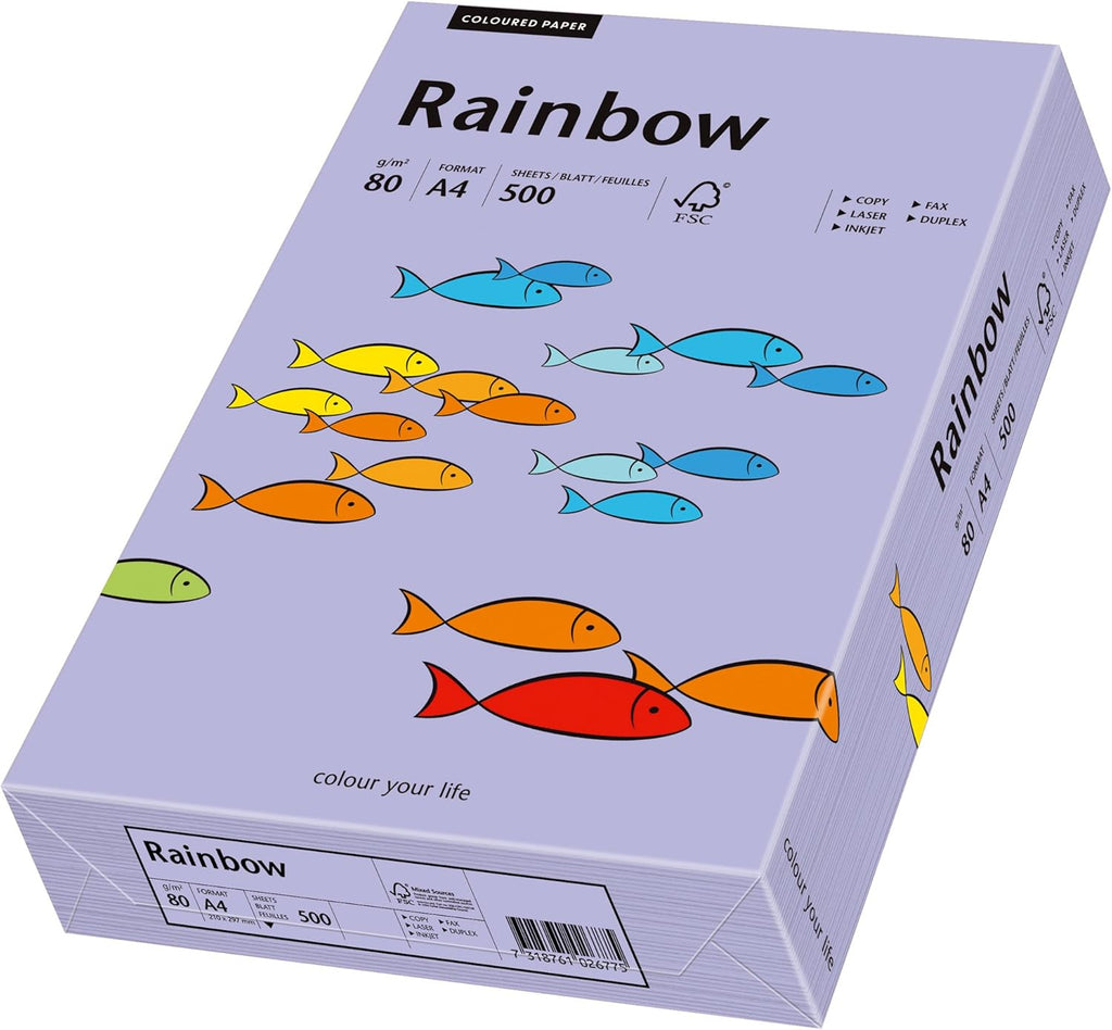 Rainbow color papir je visokokakovosten pisarniški papir, zasnovan za vsakodnevno uporabo. Primeren je za vse vrste tiskalnikov in kopirnih naprav, vključno z laserskimi, brizgalnimi, digitalnimi tiskalniki ter faks napravami. Papir je obojestransko tiskljiv, kar omogoča večjo učinkovitost pri tiskanju. Papir ima certifikate FSC®, ECF in EU Ecolabel, kar potrjuje njegovo okoljsko prijaznost. Zaradi svoje kakovosti in univerzalne uporabnosti je idealen za pisarniško uporabo, šole ter kreativne projekte. Število listov v zavitku: 500, gramatura: 80 g/m². Na voljo v različnih barvah. Na voljo v 2 formatih: Format: A3 (297 x 420 mm) in A4 (297 x 210 mm).