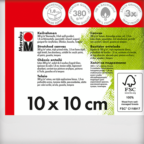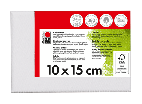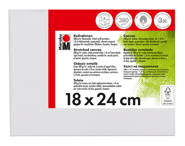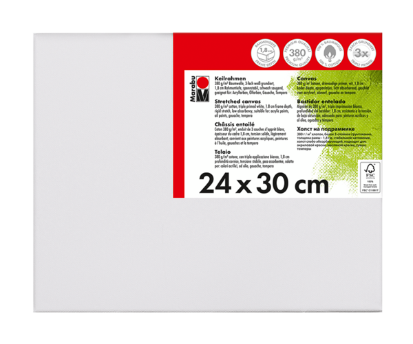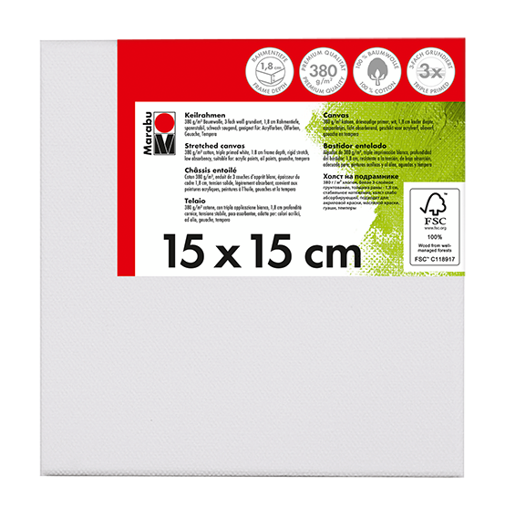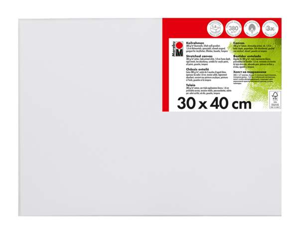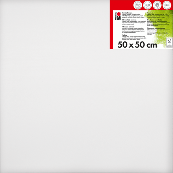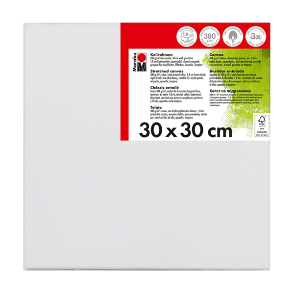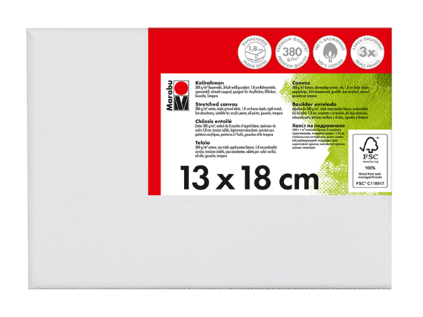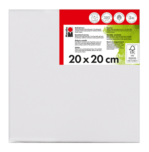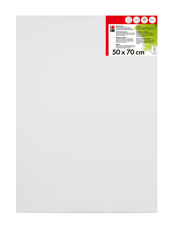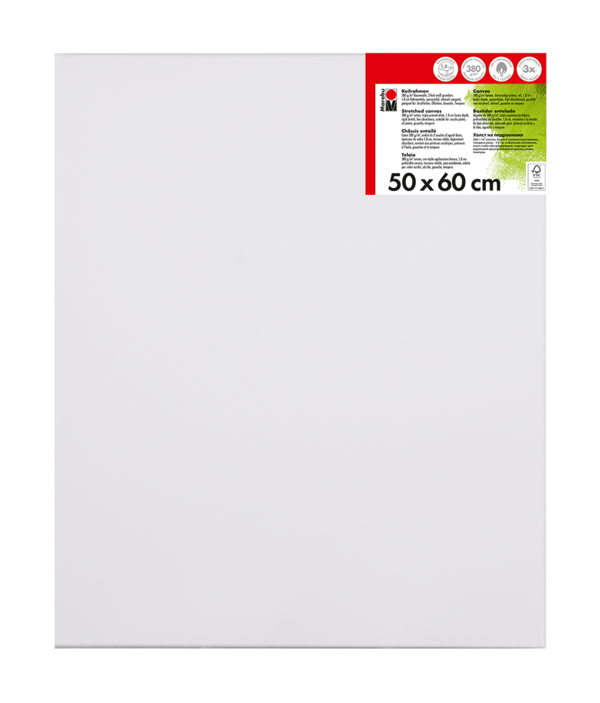 Kakovostno platno iz bombažne tkanine 380 g/m² napete čez leseni okvir Marabu Stretched Canvas. Platno je premazano s trojnim belim osnovnim premazom in je rahlo vpojno. Primerno za akrilne, oljne, gvaš/tempera barve. Na voljo v različnih dimenzijah.