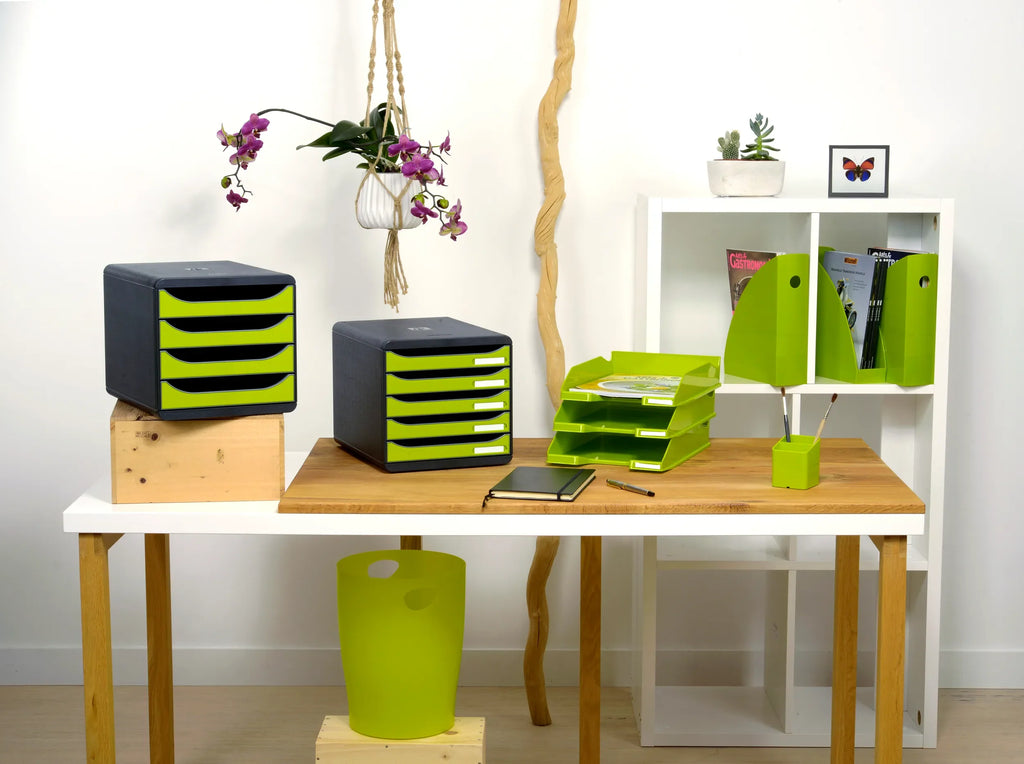 Samostoječi namizni predal Exacompta Combo Midi Glossy A4. Ohranite svoje dokumente urejene in organizirane s tem pladnjem za pisma Exacompta s certifikatom Blue Angel. Ti predali imajo 25-letno garancijo, so trpežni in stabilni. Zlagajo se lahko navpično ali stopničasto in so združljivi z različnimi modeli pladnjev. Primeren za dokumente A4/A4+ in vključuje držala za etikete. Dimenzije: 346 x 255 x 65 mm. Na voljo v različnih visoko sijočih barvah.