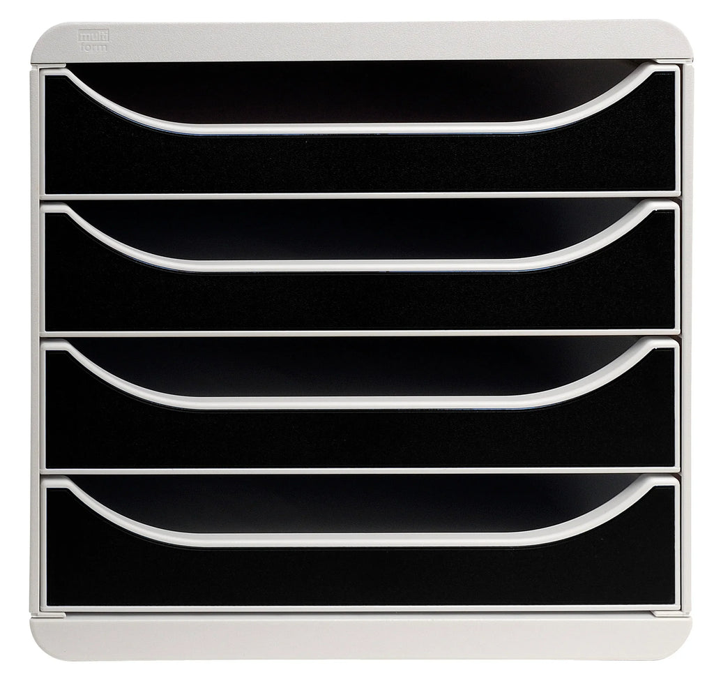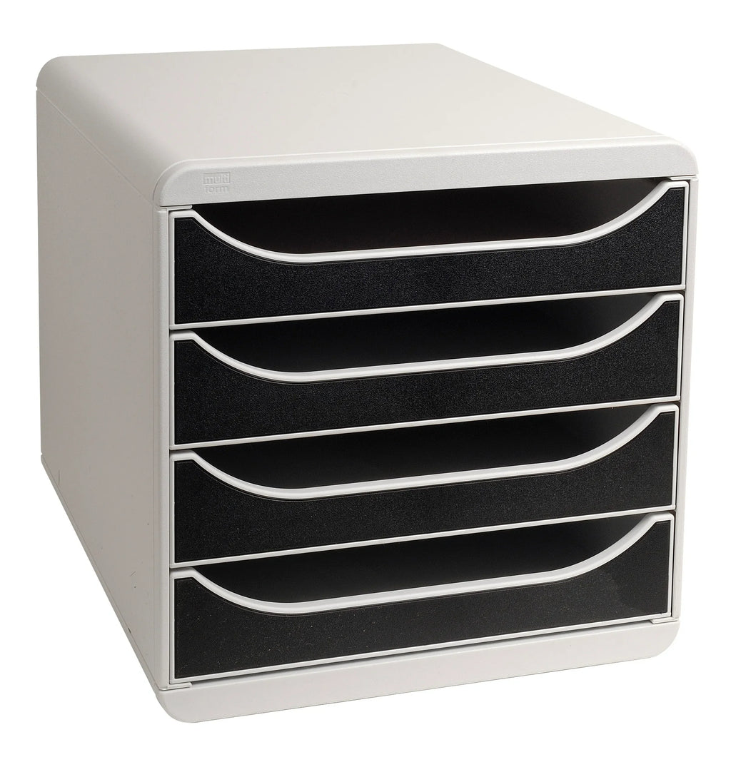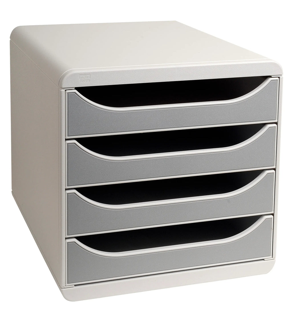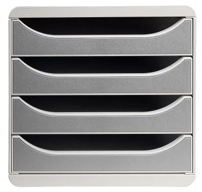 Exacompta BigBox Office je predalnik s 4 predali v višini 55 mm. Predali so idealnih dimenzij za shranjevanje dokumentov formata A4+, se gladko zapirajo in imajo zaporo, da jih ni mogoče nenamenoma izpuliti iz ohišja predalnika. Kompaktno, a lahko ohišje omogoča shranjevanje velike količine dokumentov. Velikost predalnika je dobro premišljena, popolnoma se prilega pisaniški mizi. To je praktičen in stilski predalnik, ki bo polepšal vašo pisano in jo uredil hkrati. Zunanje dimenzije predalnika: 347 x 278 x 267 mm. Teža: 3.006 g. Predalnik ima 25 letno garancijo.
