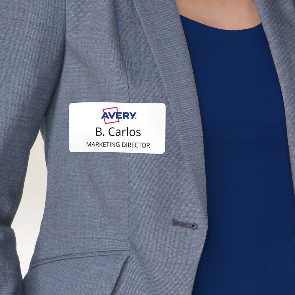 V zavitku je 20 listov, vseh skupaj je 200 priponk. Samolepilne priponke so narejene so iz acetatne svile, dobro se oprimejo oblačil in po odstranitvi ne puščajo sledi. Niso primerne za lepljenje na usnje, svilo, žamet in druge občutljive tkanine. Idealne so za seminarje, konference ali druge prireditve. Primerne so za tiskanje z laserskimi tiskalniki. Za oblikovanje uporabite brezplačni program, dostopen je na www.avery-zweckform.si.